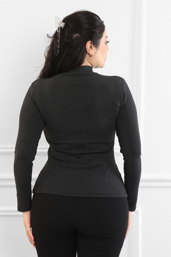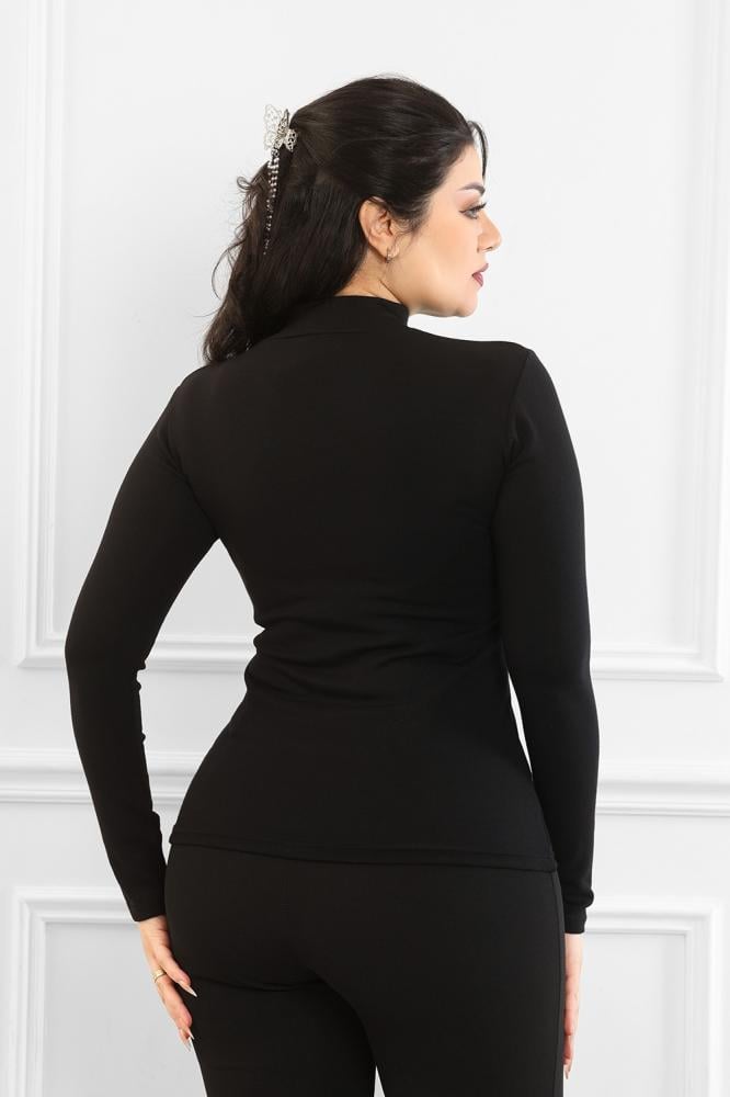 - الياقة: ياقة عالية وقائمة (High Neck) تمنح مظهرًا عصريًا وعمليًا.