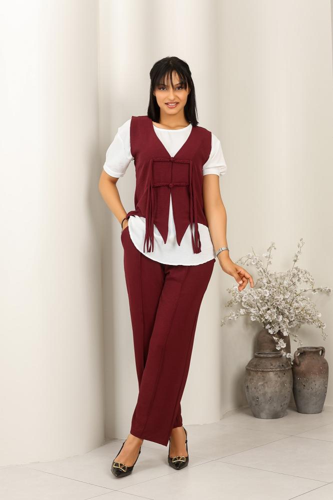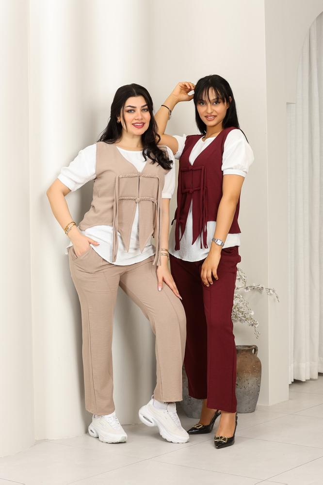 - مجموعة أنيقة من ٣ قطع (ثلاثية) - جيليه (صدرية/سترة بدون أكمام) + بنطلون.