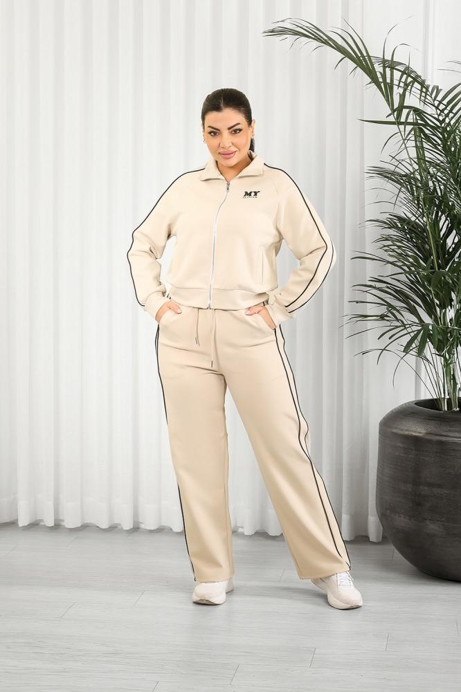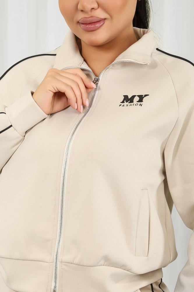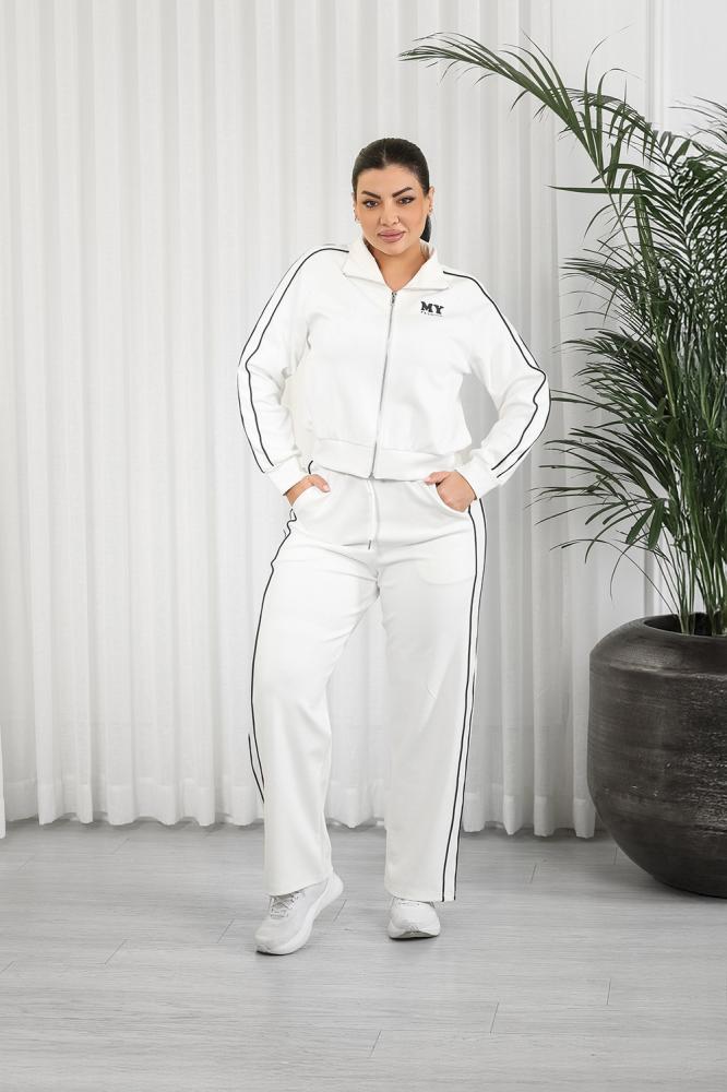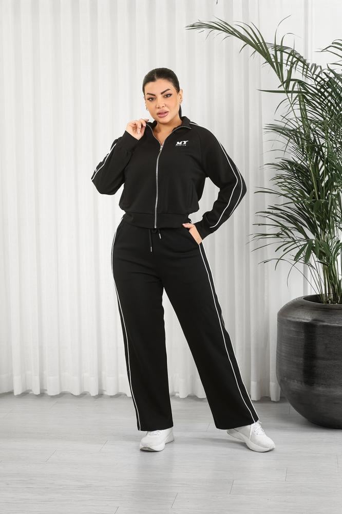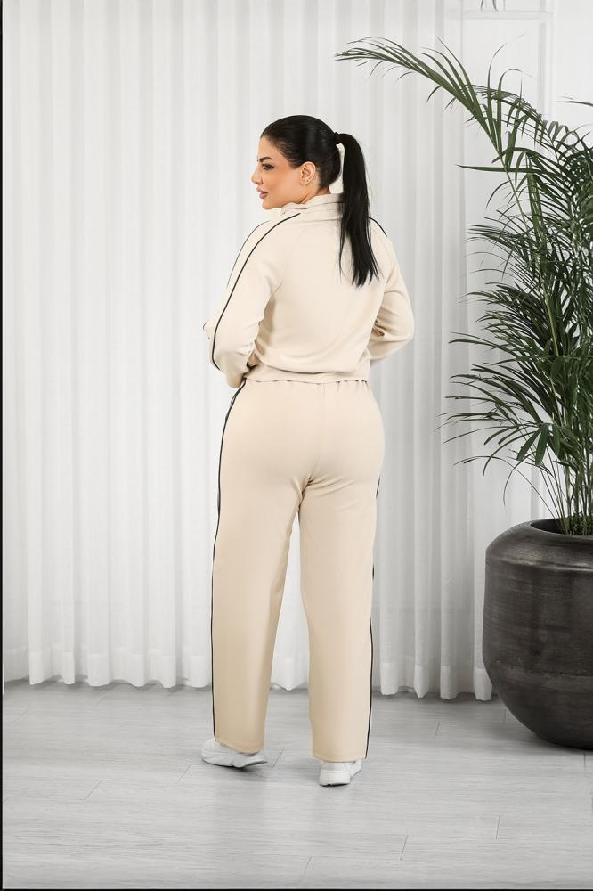 طقم رياضي مكوَّن من جاكيت بسحّاب كامل وبنطلون ضيّق عند الكاحل (Tapered Fit).