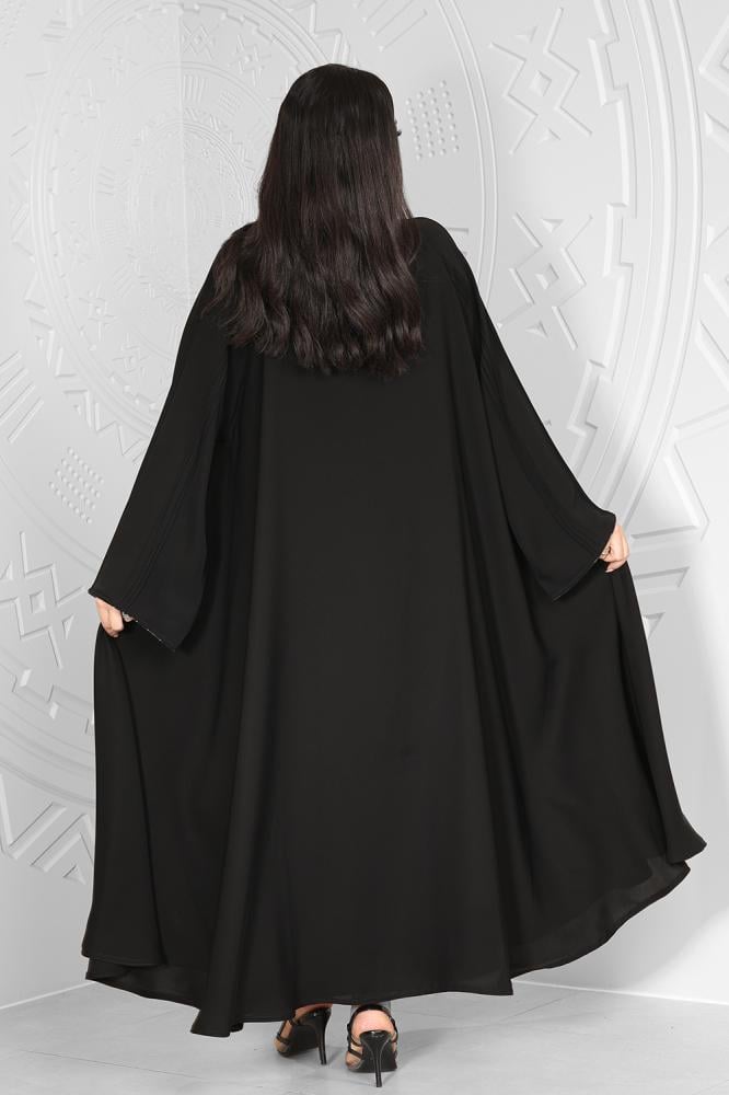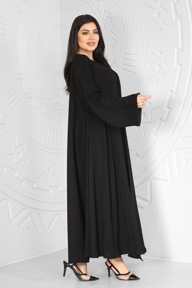 عباية قماش كريب انترنت دبل كلوش مزينة بخطوط أسود أزرار طقطق
