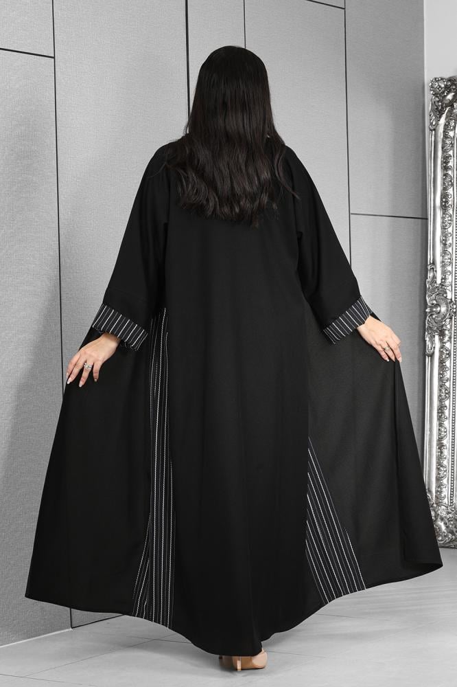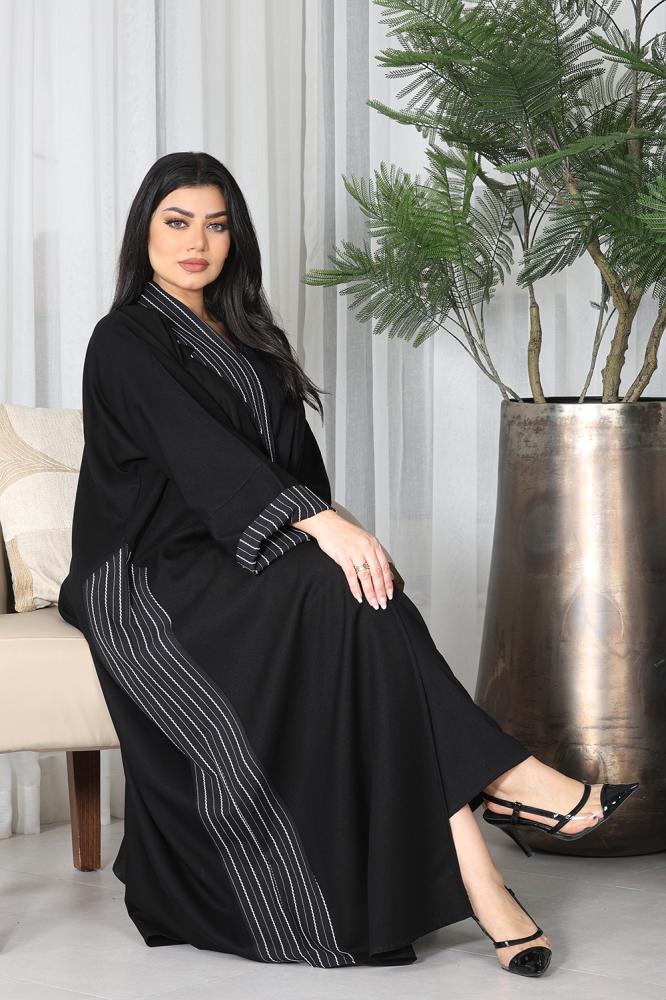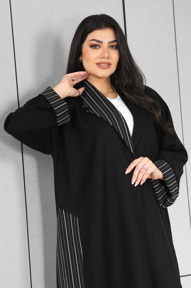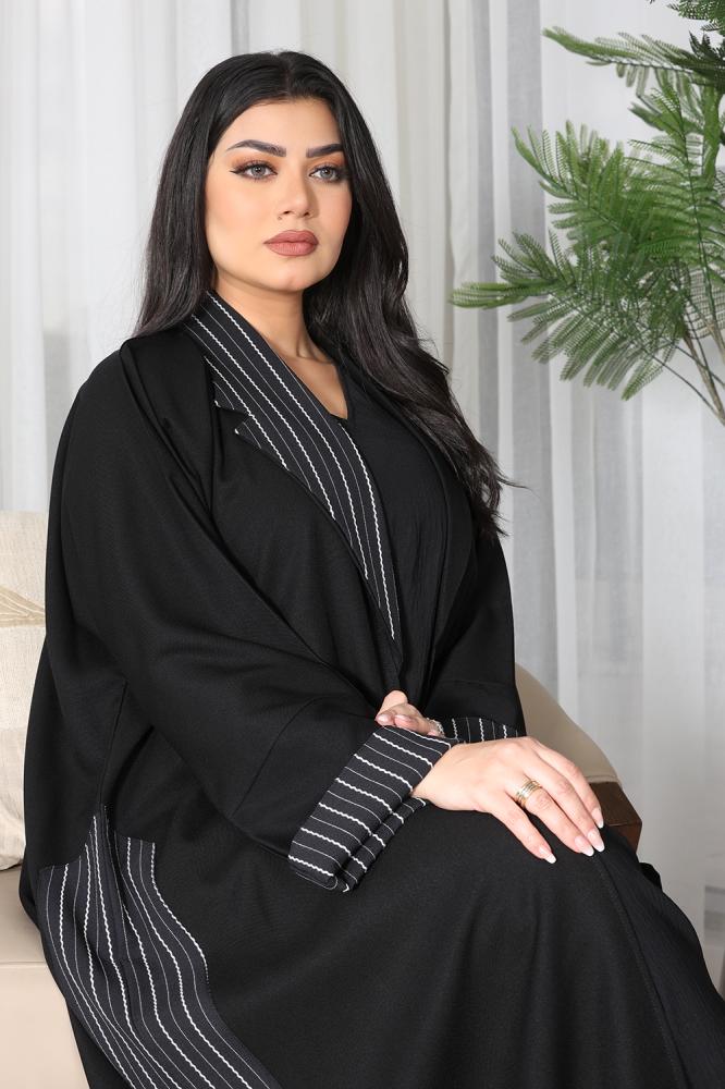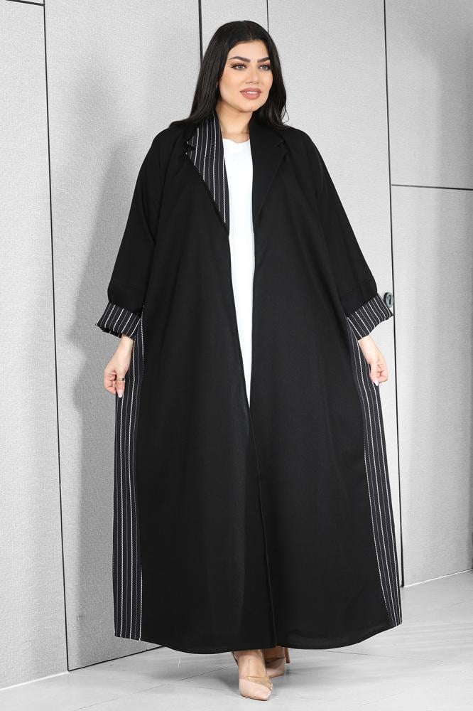عباية قلاب قماش كريب الفاخر تدخيلة كتان مقلم أسود وابيض
