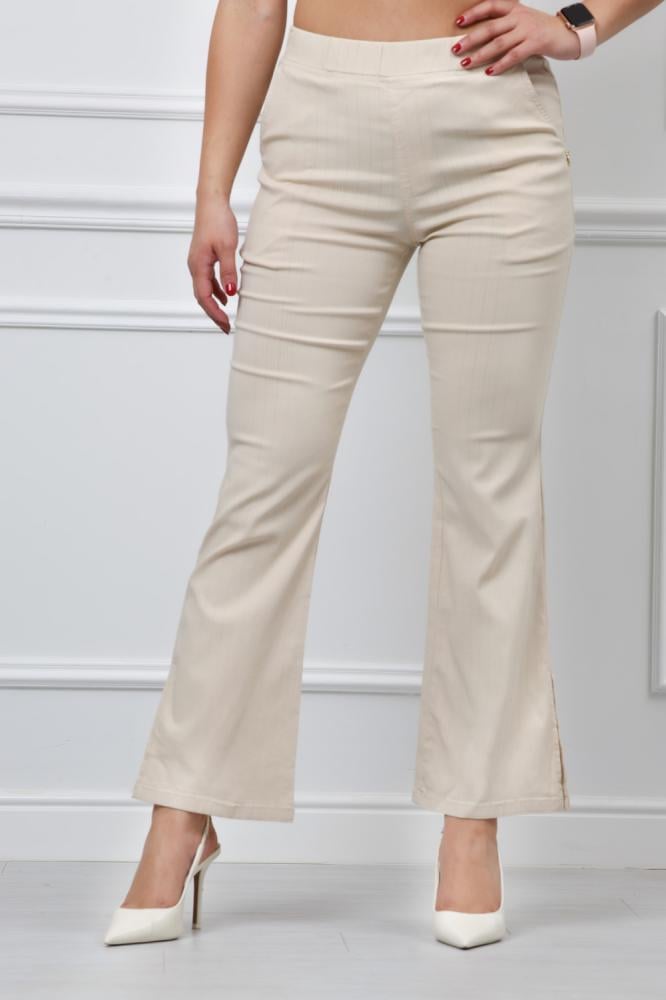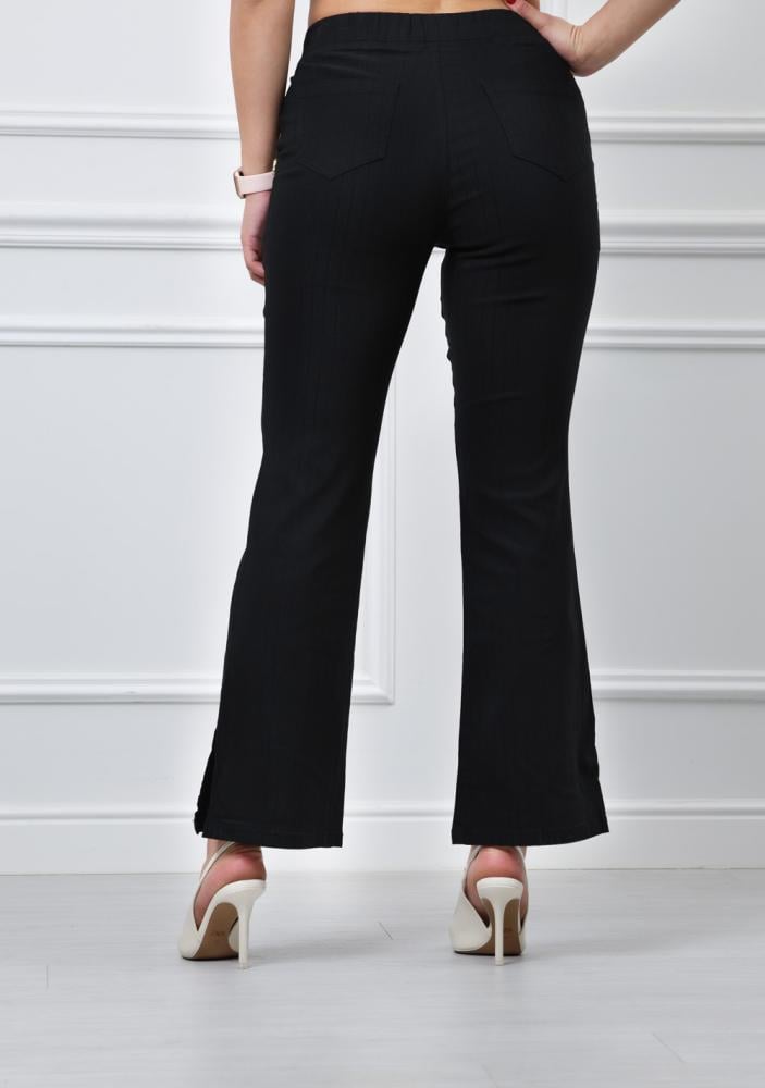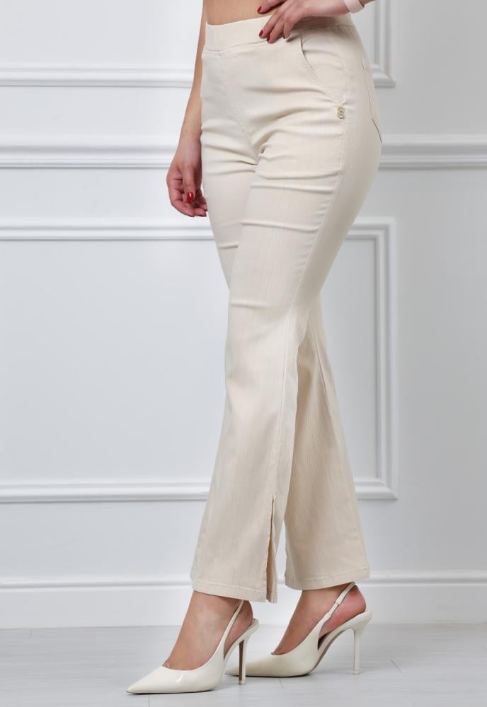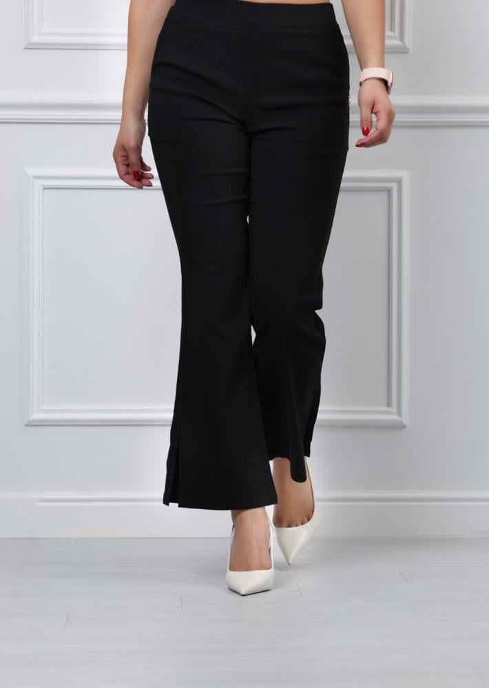 بنطال بقصة واسعة من الفخذين إلى الكاحل، بدون أزرار أو سحاب، نوفره لكِ بفتحة جانبية تضفي لمسة فخامة، ومتاح بألوانه المختلفة لمناسبة ذوقك.