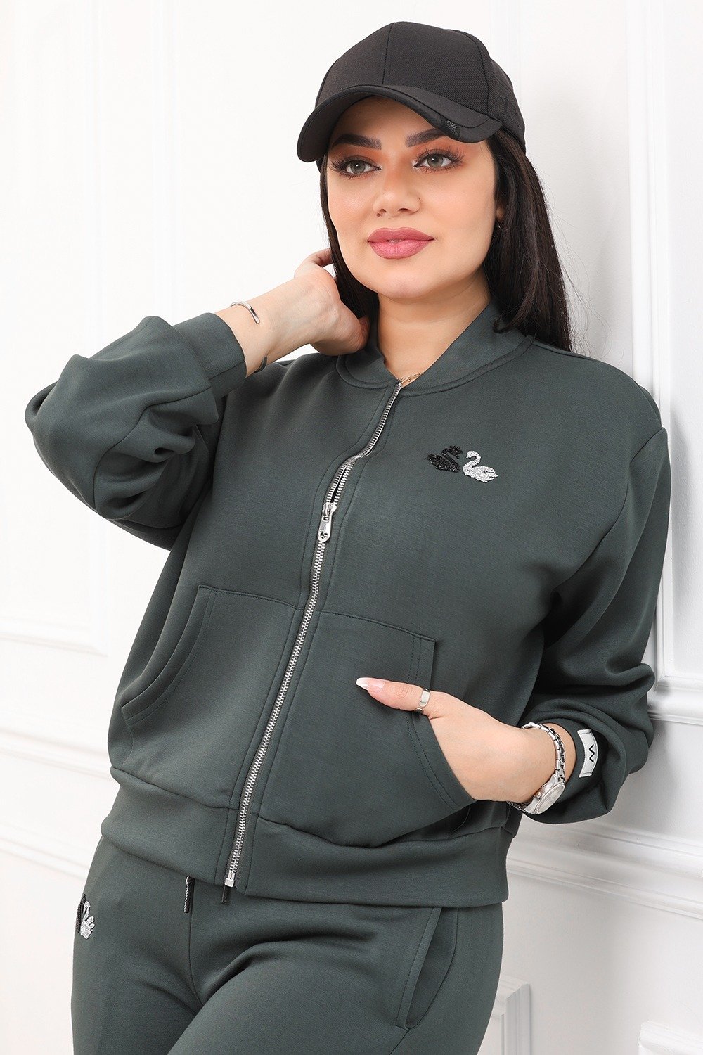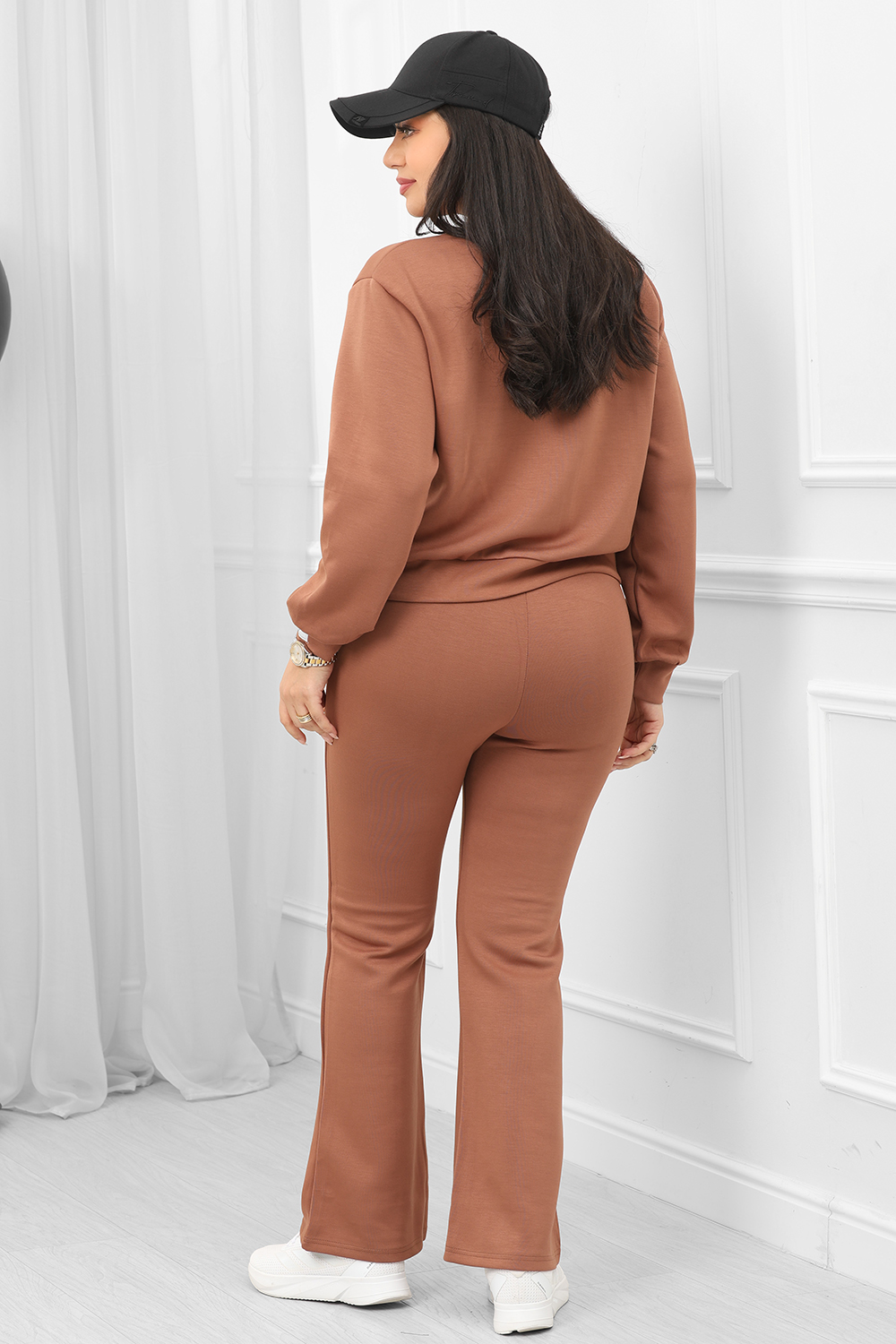 ترنج شتوي كاجوال توب بياقة وسحاب وبنطال واسع من الأسفل
