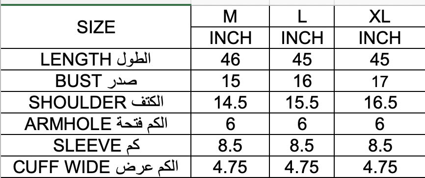 - طول الميدي لأسفل الركبه، يوازن بين الأناقة والراحة.