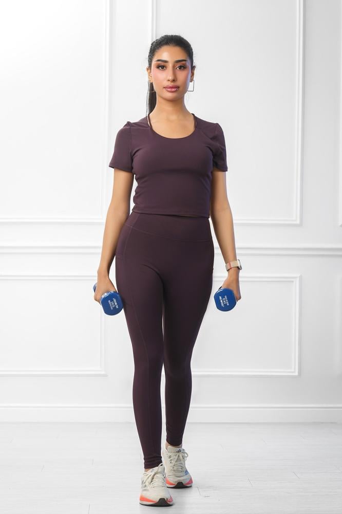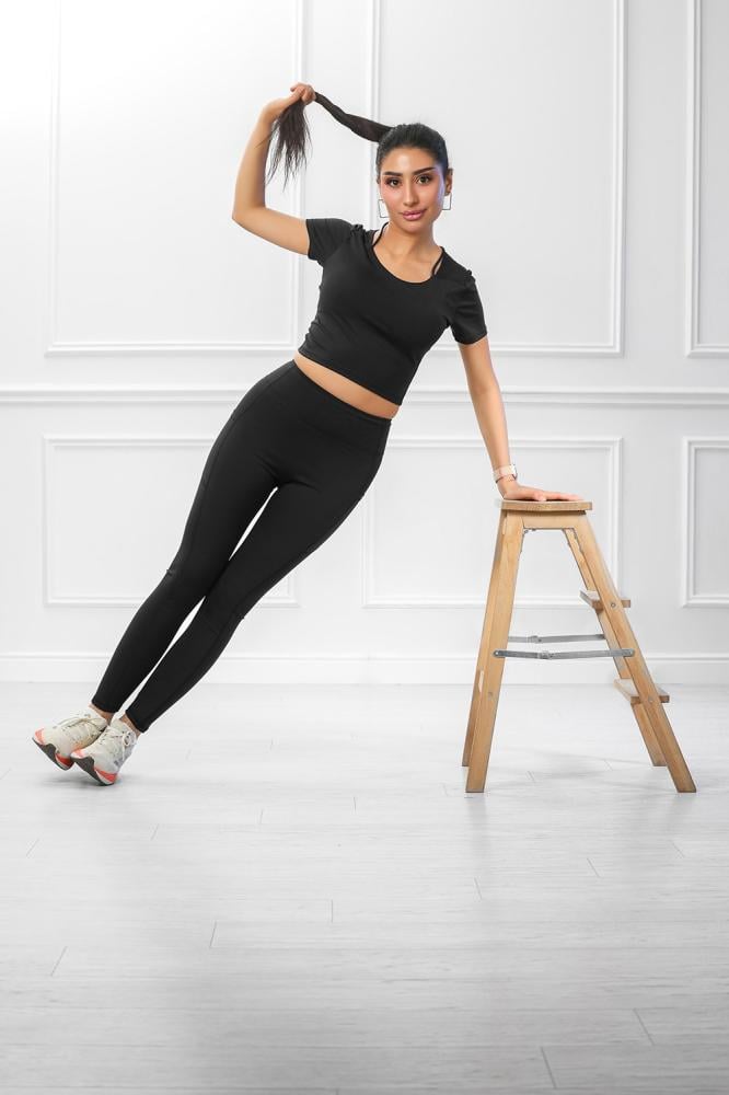 قماش رياضي يتميز بملمس ناعم، خفيف الوزن، ذو قدرة عالية على التمدد والتنفس، مما يجعله مناسبًا للنشاط البدني ويتكيف مع حركة الجسم.