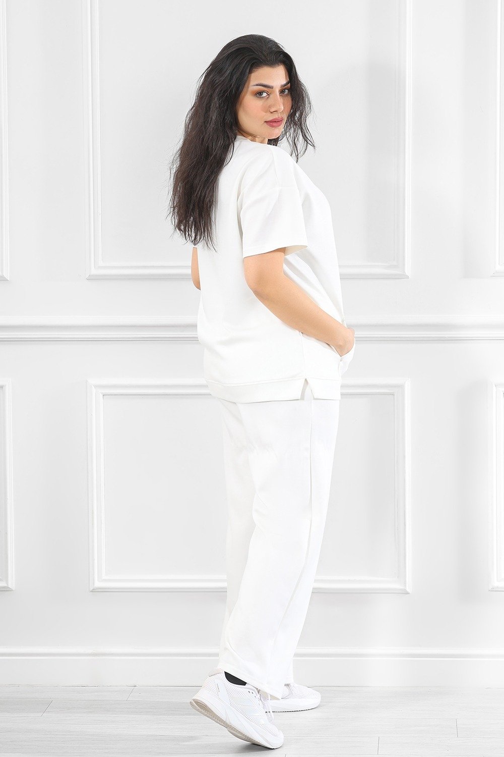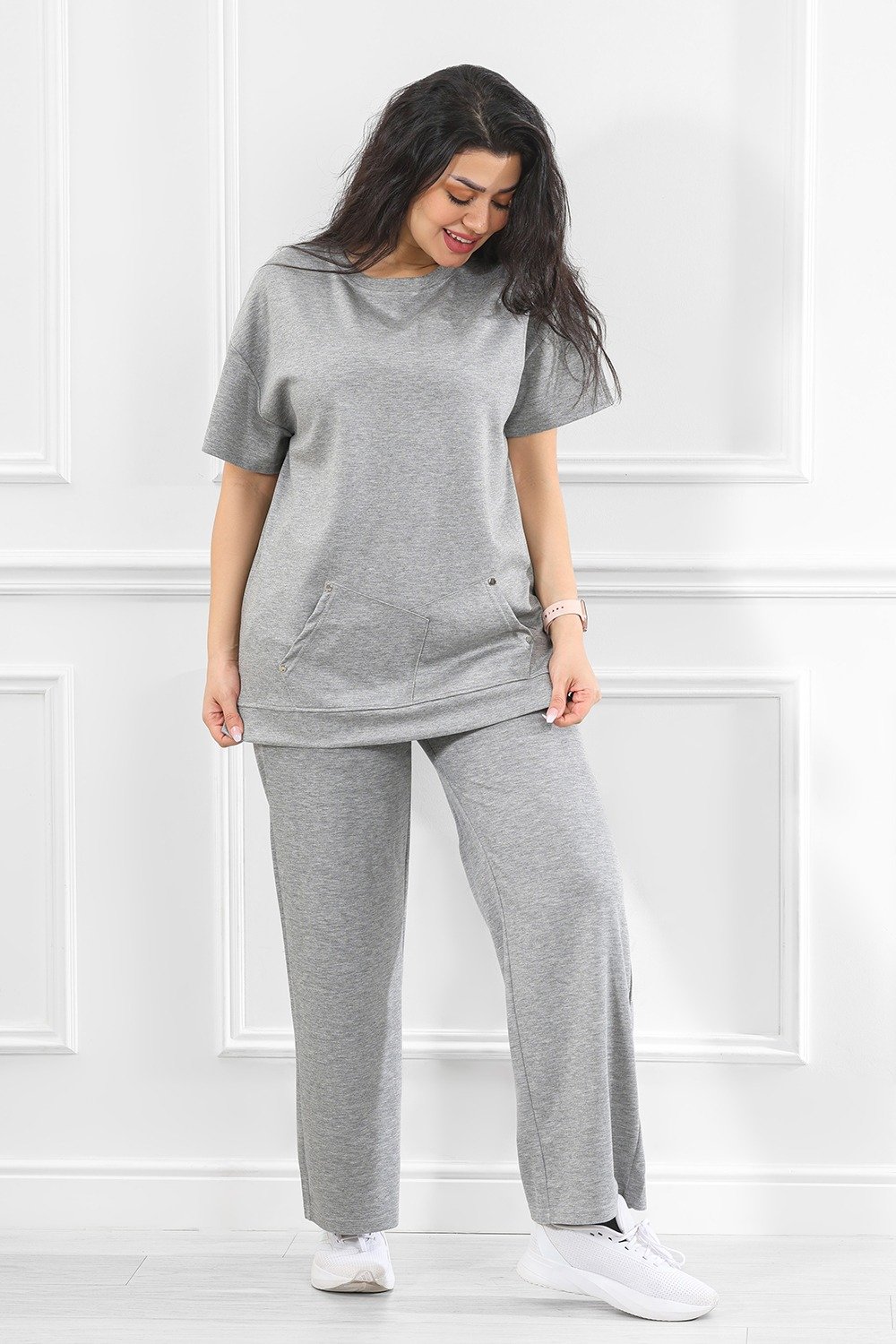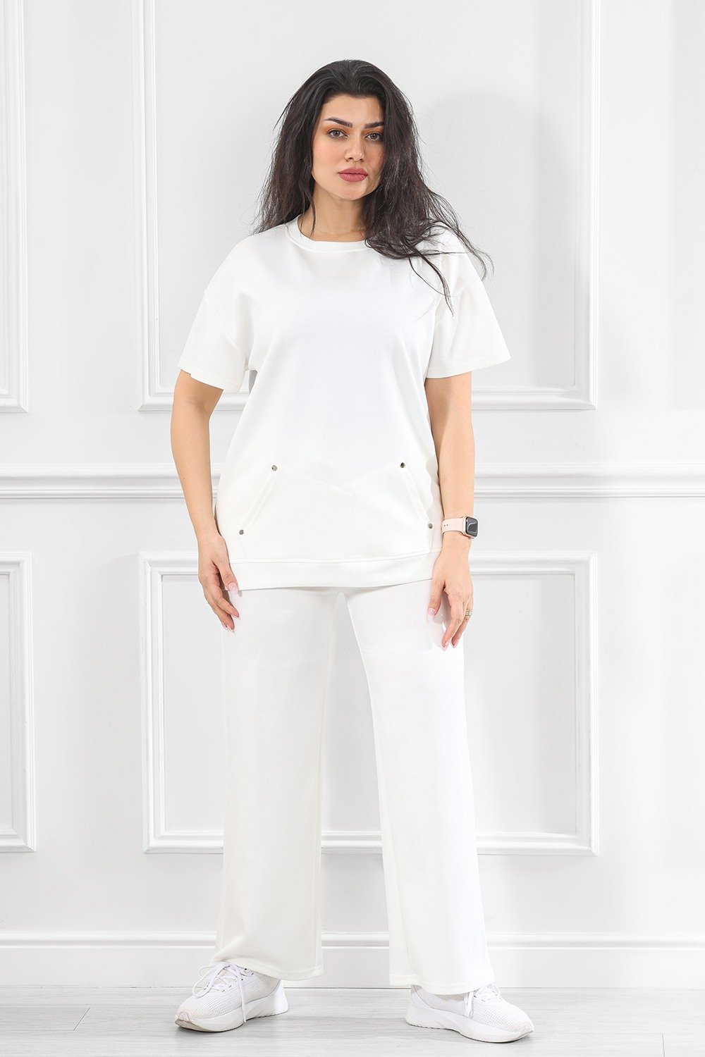 هذا المنتج هو طقم أنثوي عالي الجودة مكوَّن من توب قصير الأكمام فضفاض وسروال واسع الأرجل، مُصمم ليجمع بين الأناقة اليومية والراحة المثالية. يُناسب الفعاليات غير الرسمية، اللقاءات العائلية، أو حتى كإطلالة عمل من المنزل مع لمسة عصرية.
