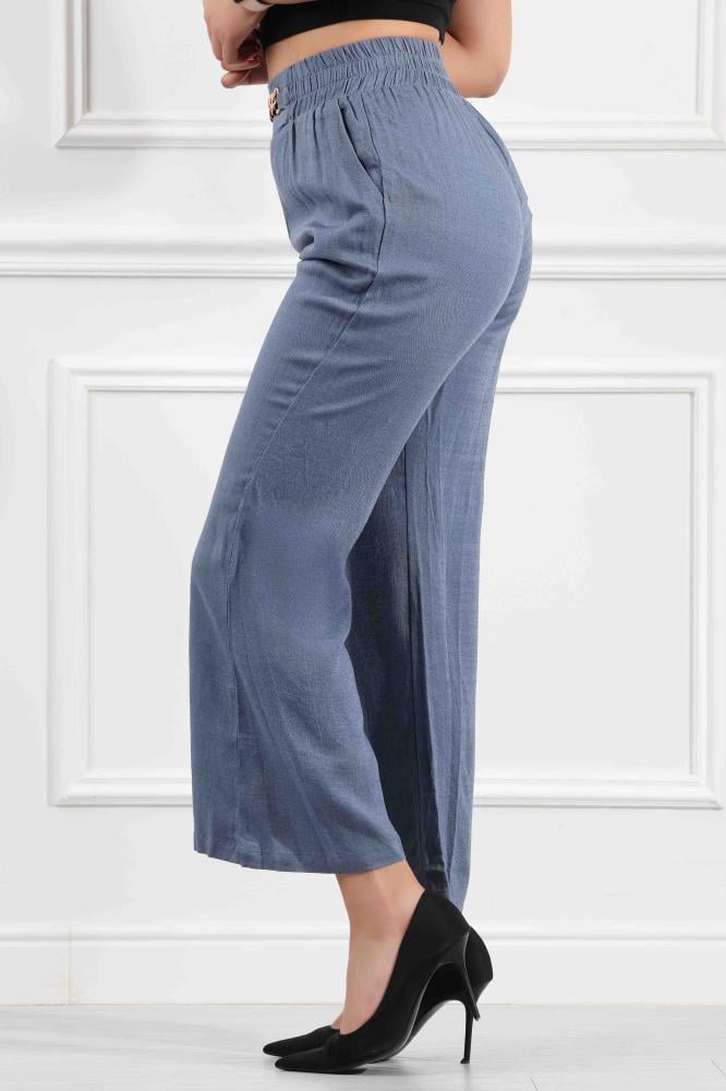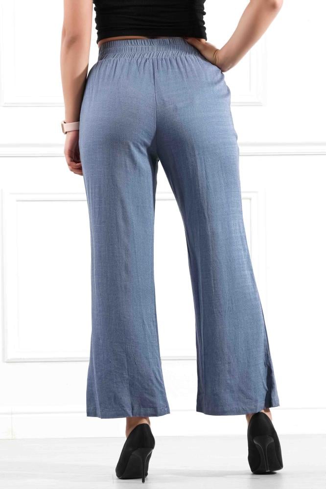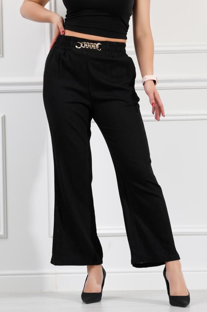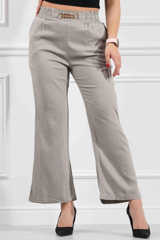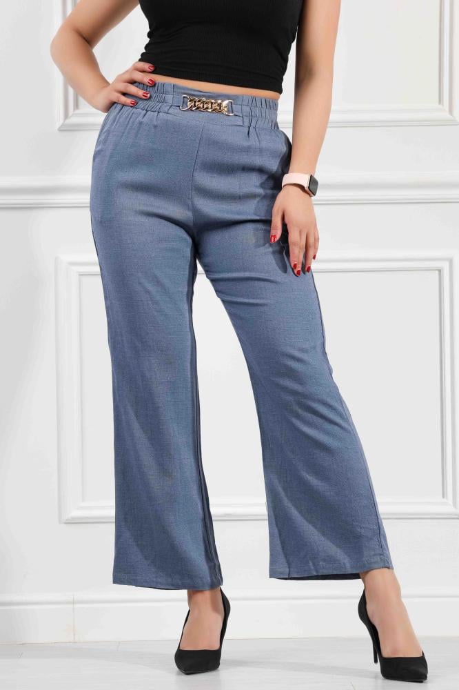 بنطال "مايل" من أفضل أنواع الكريب، يتسم بقصة واسعة، واكسسوار على الخصر، لإطلالة كلاسيكية وعصرية.