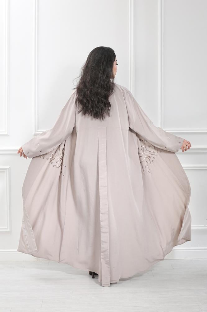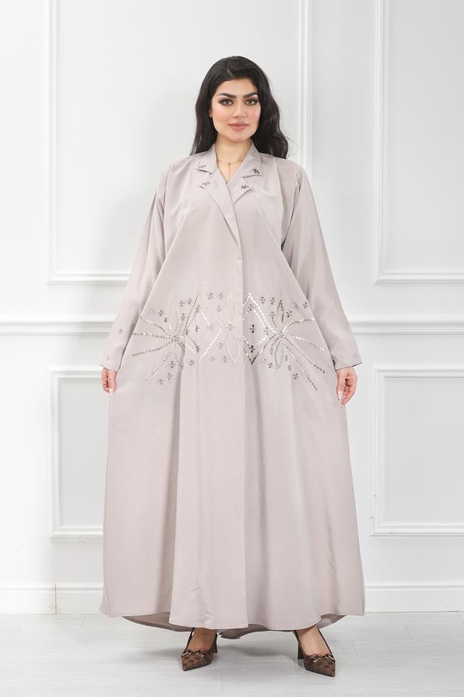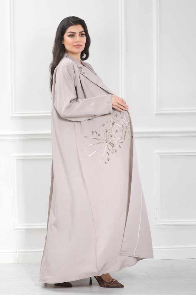 عباية ملونة قماش كريب ناعم تطريز نص كلوش لف