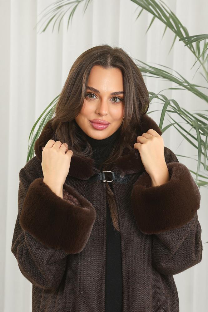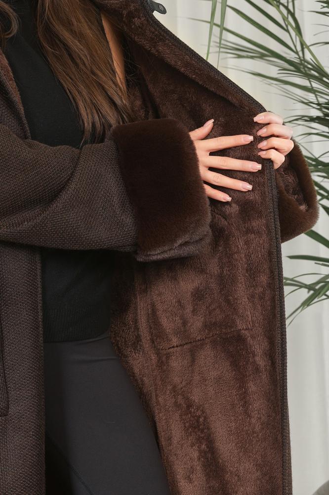 معطف شتوي طويل نسائي بغطاء رأس وفراء