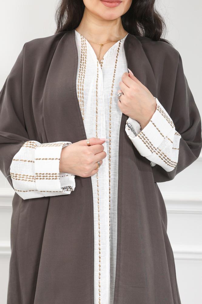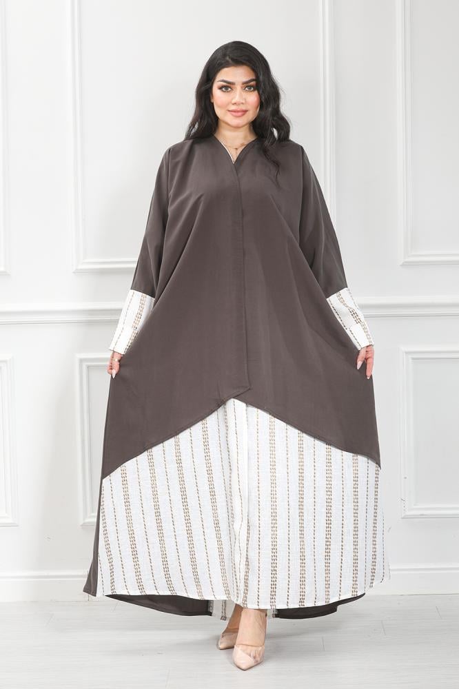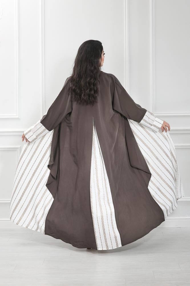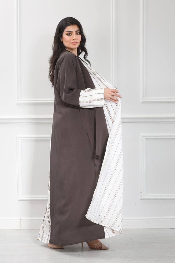 عباية ملون قماش طبقتين كريب ناعم مع لينن مقلم