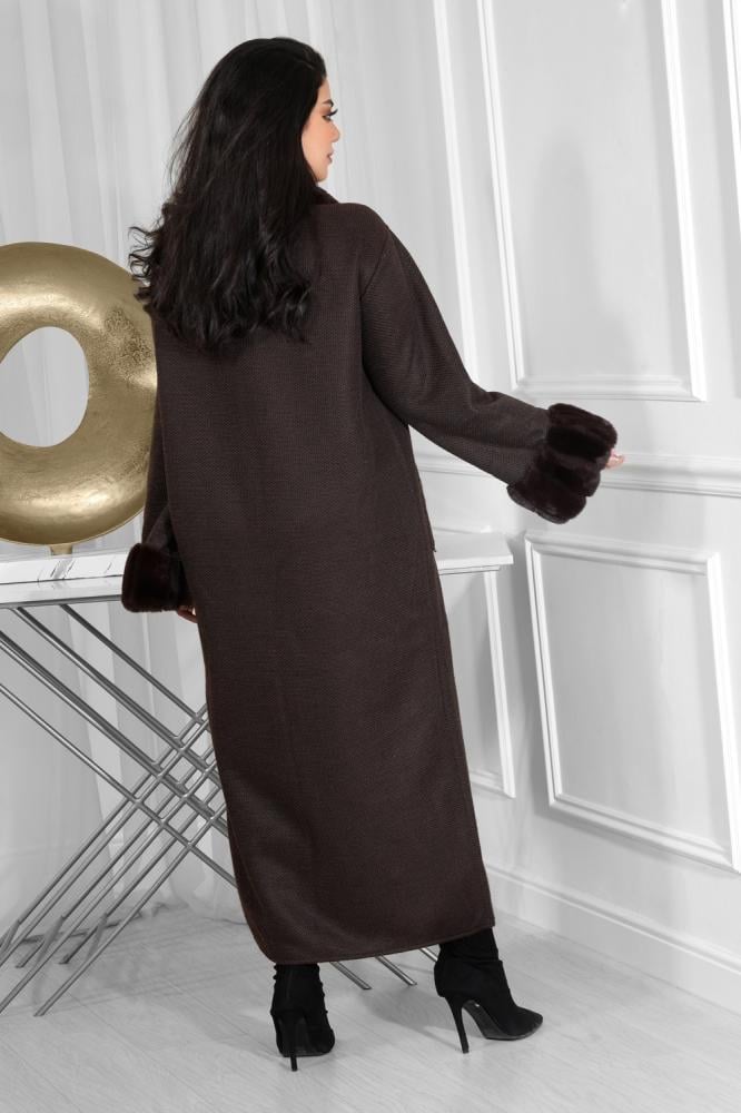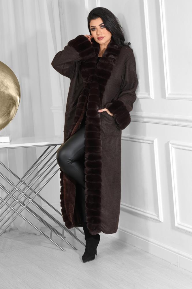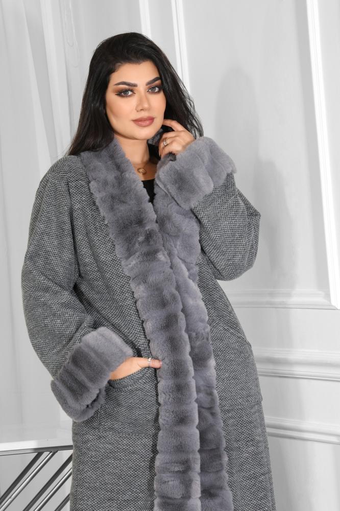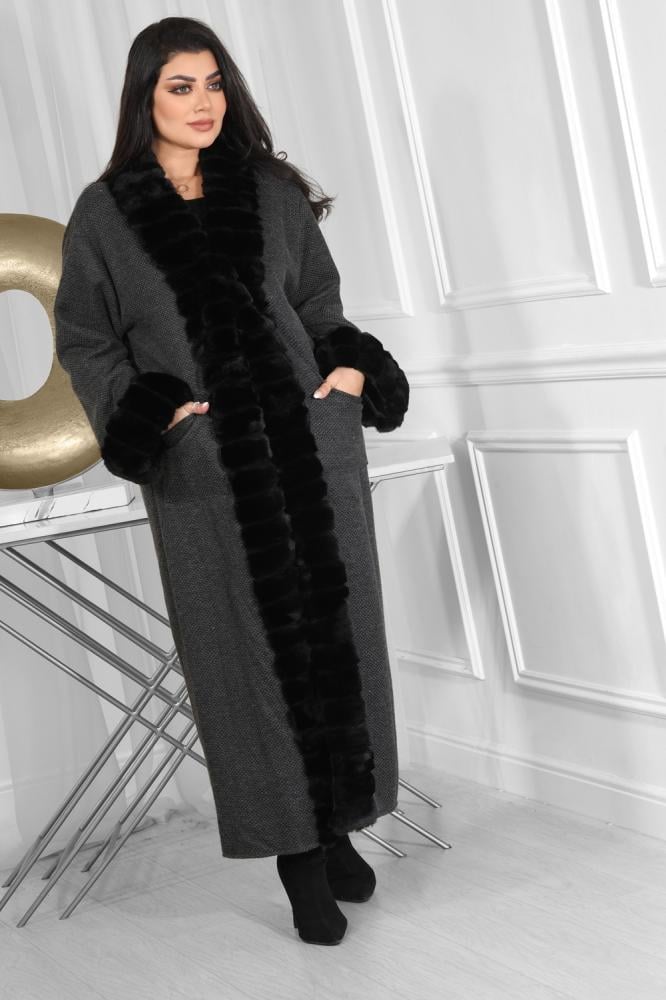 تصميم كلاسيكي أنيق لبشت شتوي ماكسي، من خامة عالية الجودة دافئة، أضفنا له فرو على الحواف ونهاية الأكمام بلون متناسق مع اللون الأساسي للتصميم .