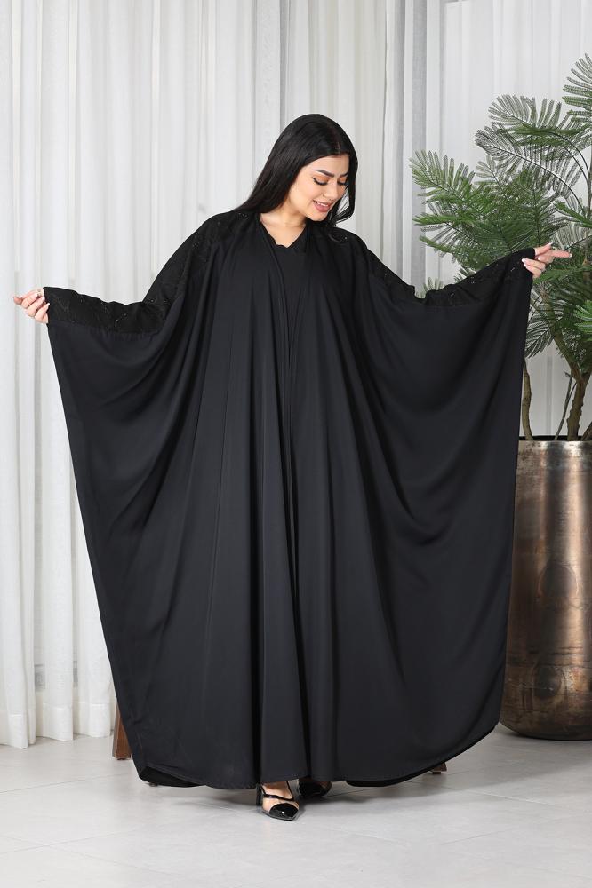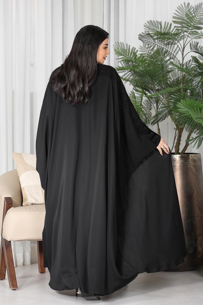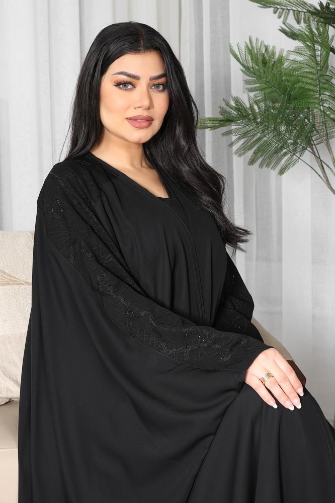 عباية بشت واسع قماش لمسة حرير - تدخيله اسود في الكم كريستال اسود لف