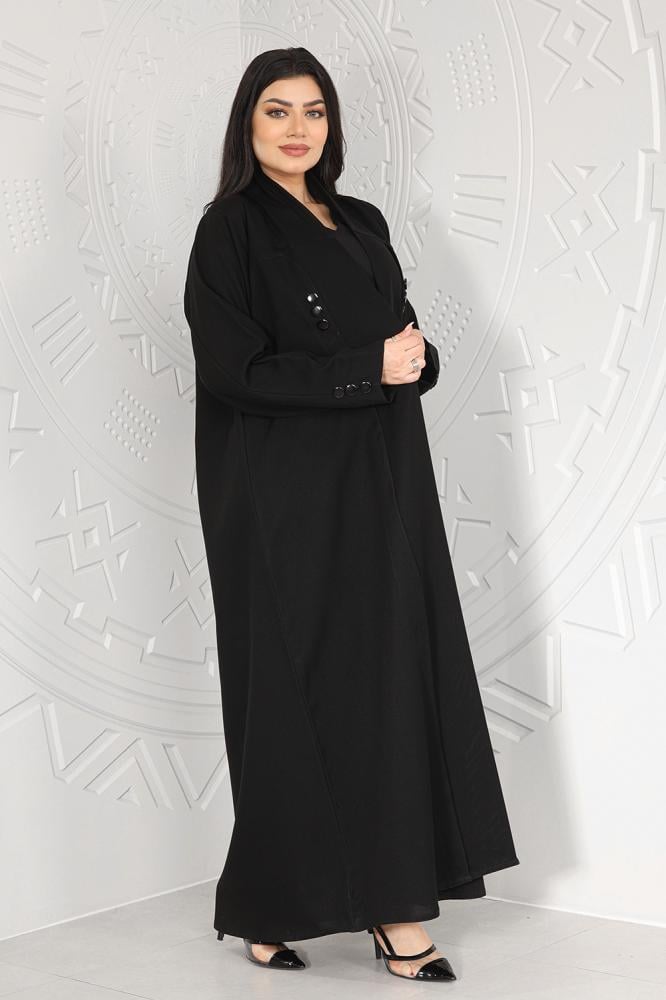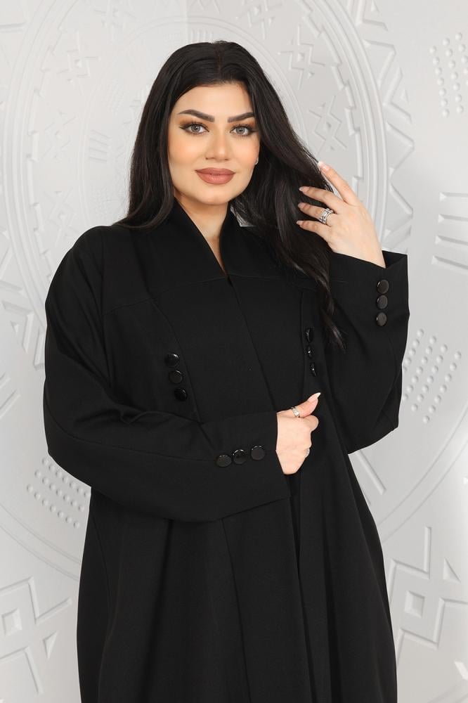عباية كريب الفاخر مزينة من مزينة بزرار في الأمام والكم