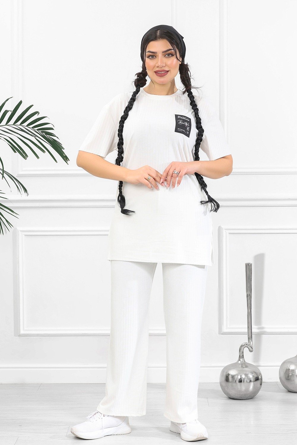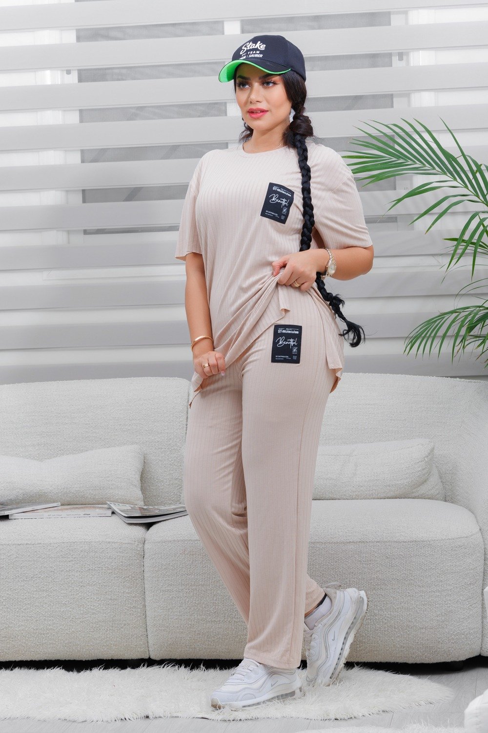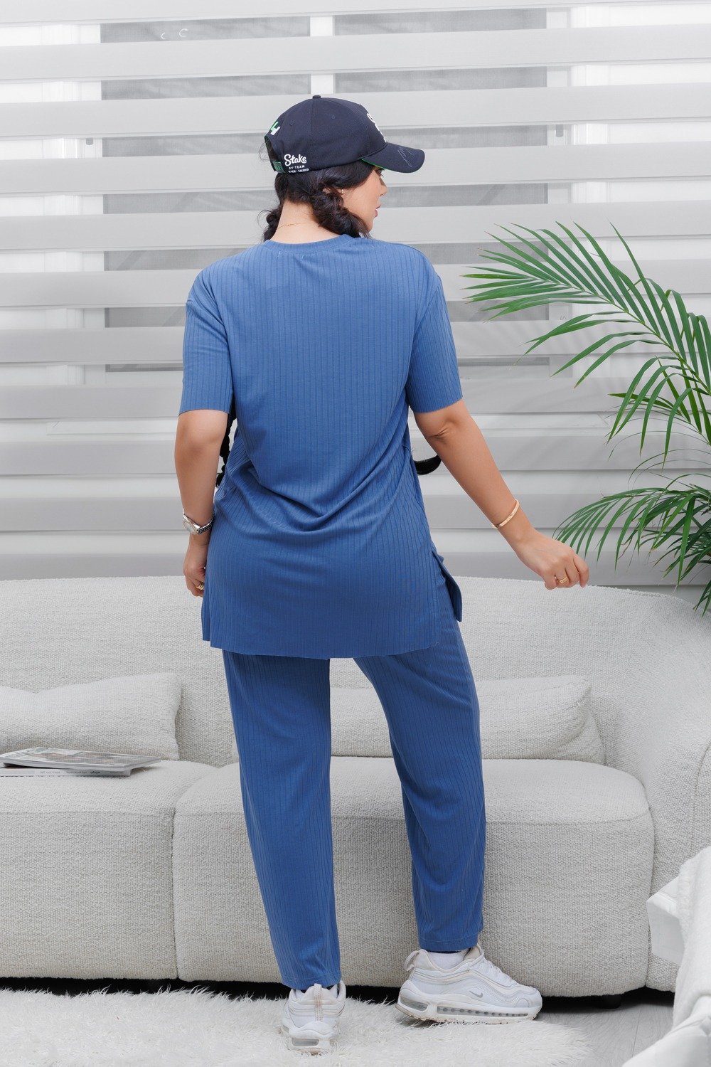الزي يُقدّم إطلالةً كاجوال عصرية تجمع بين الأناقة البسيطة والراحة اليومية.