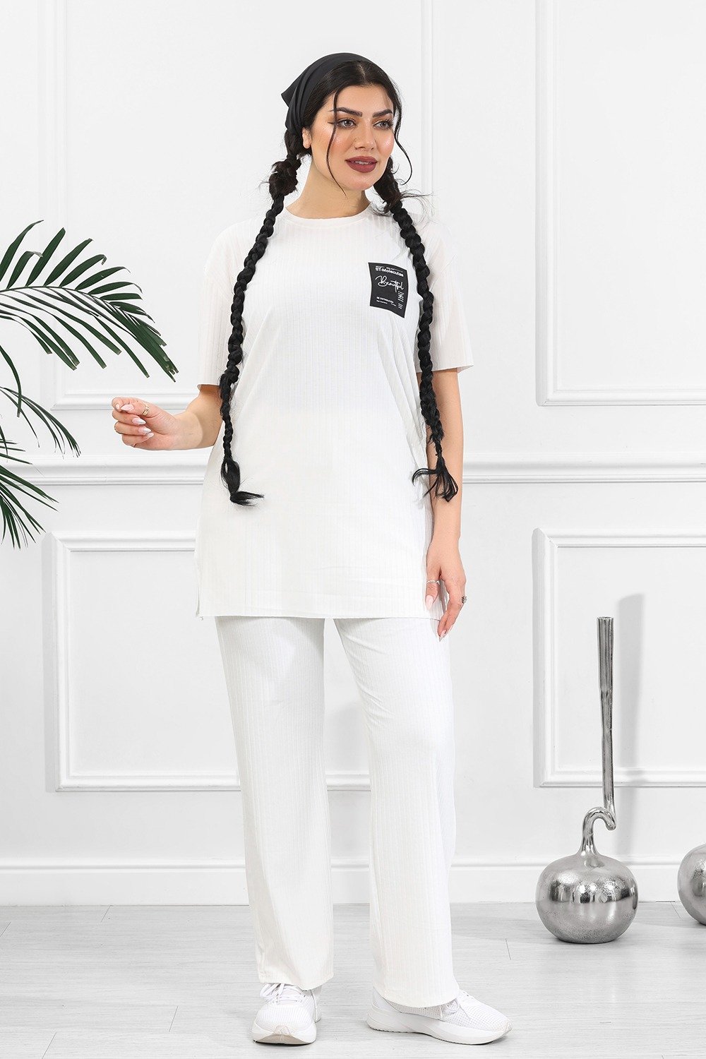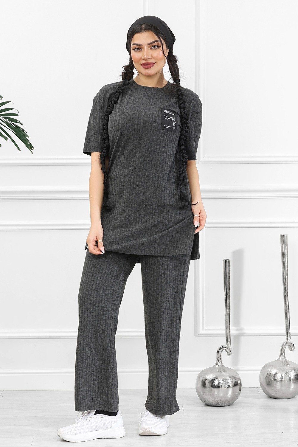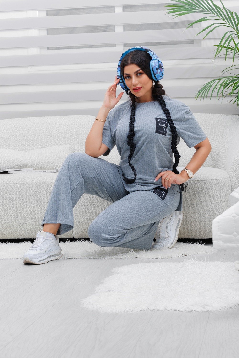 الزي يُقدّم إطلالةً كاجوال عصرية تجمع بين الأناقة البسيطة والراحة اليومية.