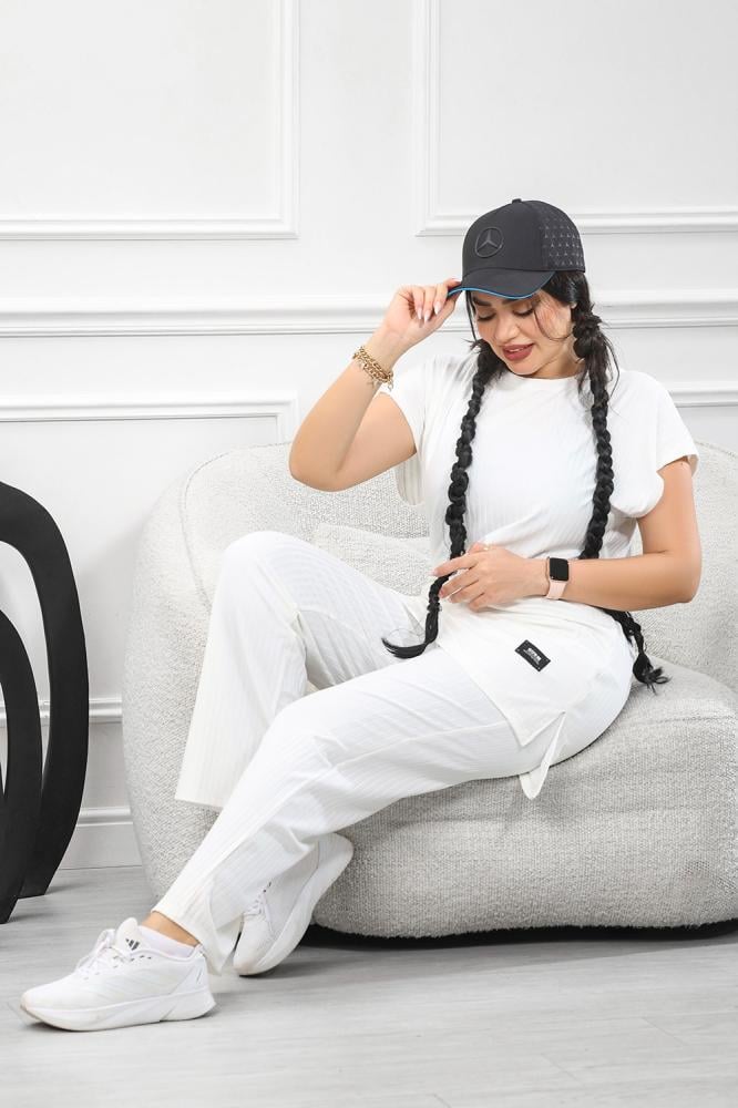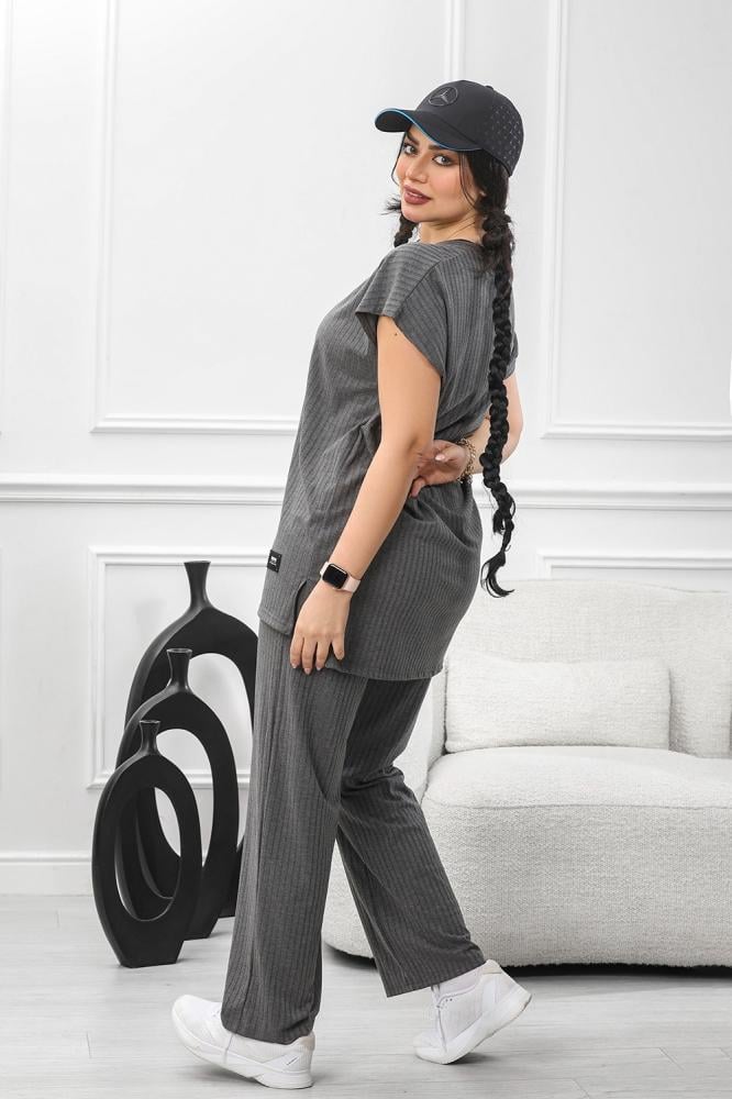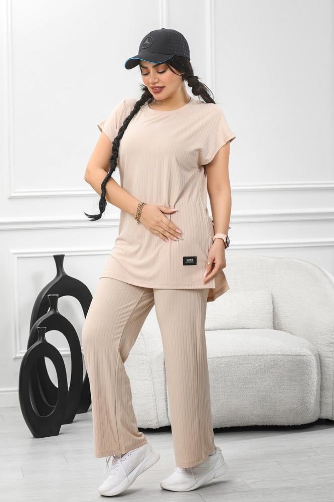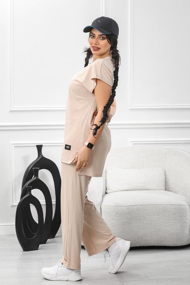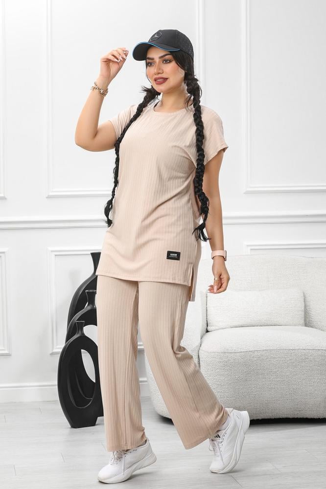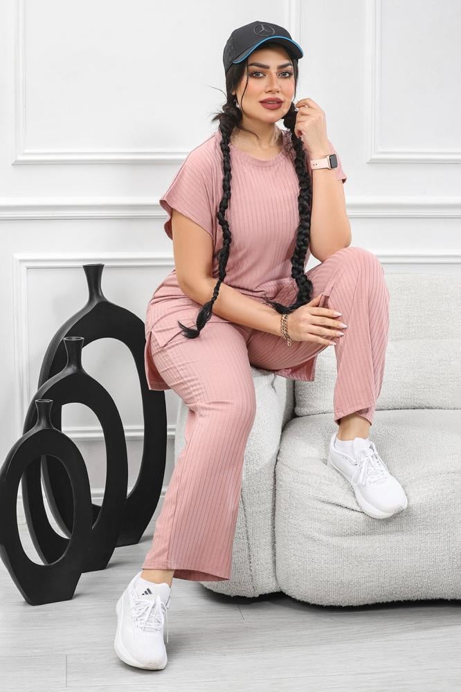 بلوزة فضفاضة ذات الأكمام القصيرة والسروال المطابق يعكس هدوءً وأنوثةً معاصرة،