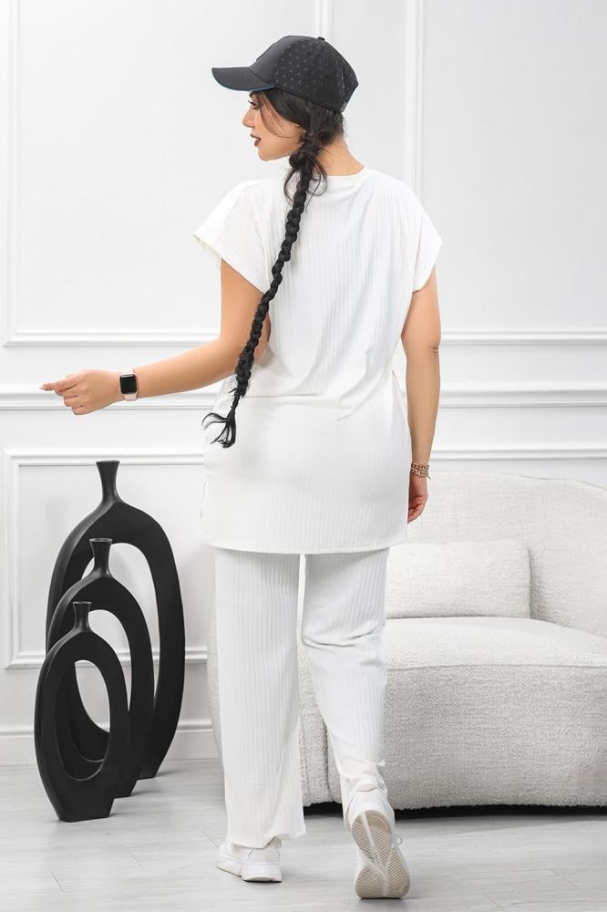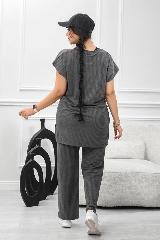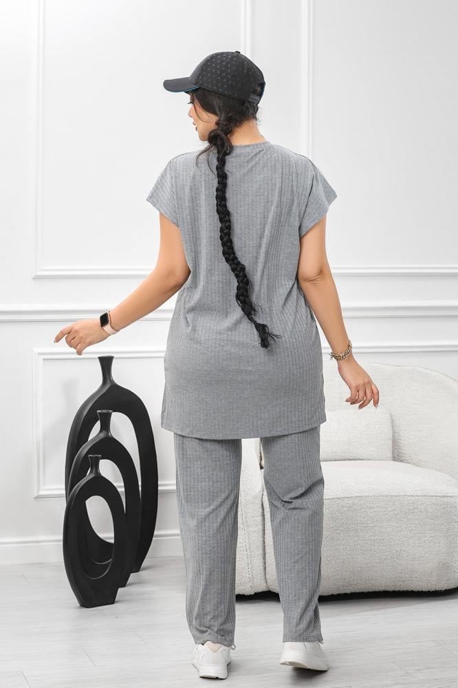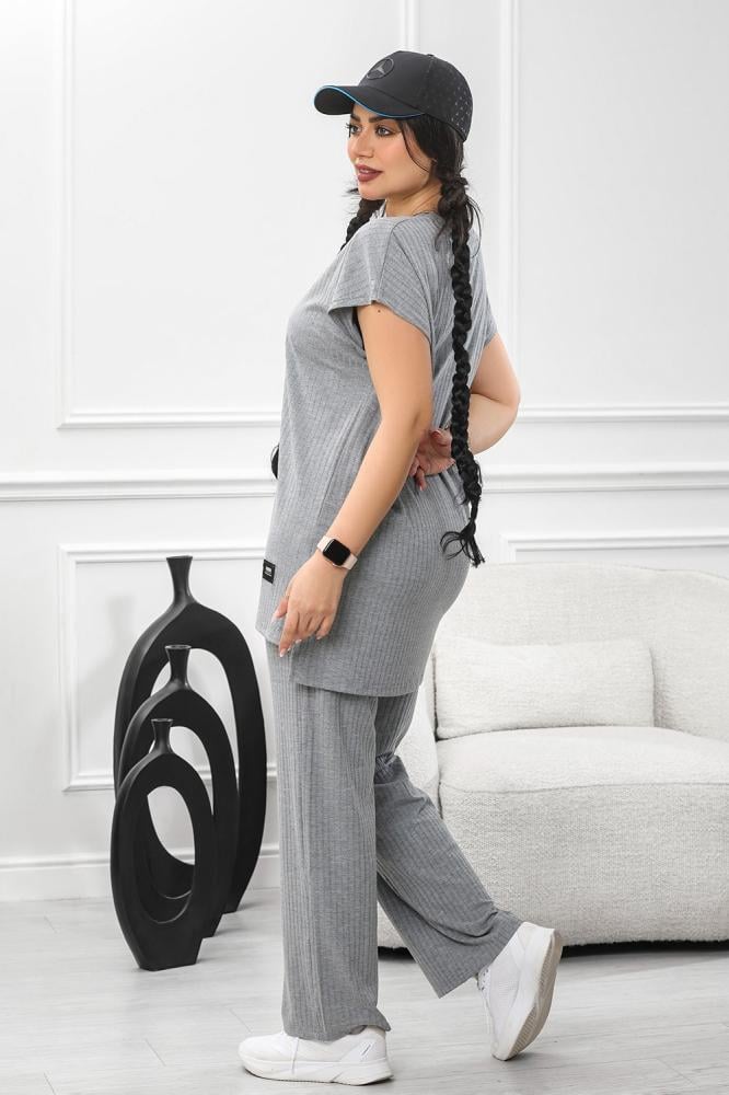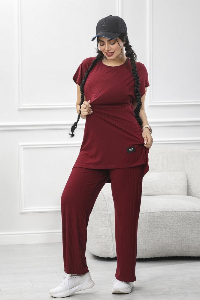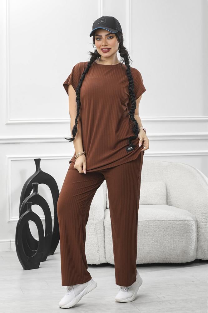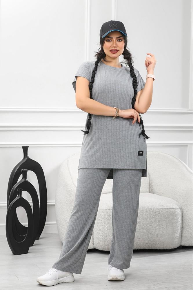 بلوزة فضفاضة ذات الأكمام القصيرة والسروال المطابق يعكس هدوءً وأنوثةً معاصرة،