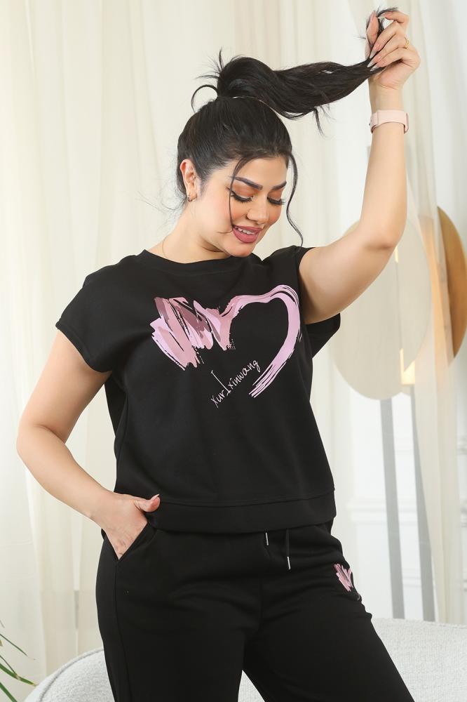 - طباعة أمامية: تصميم قلوب وردية وكلمة "MY" على الصدر