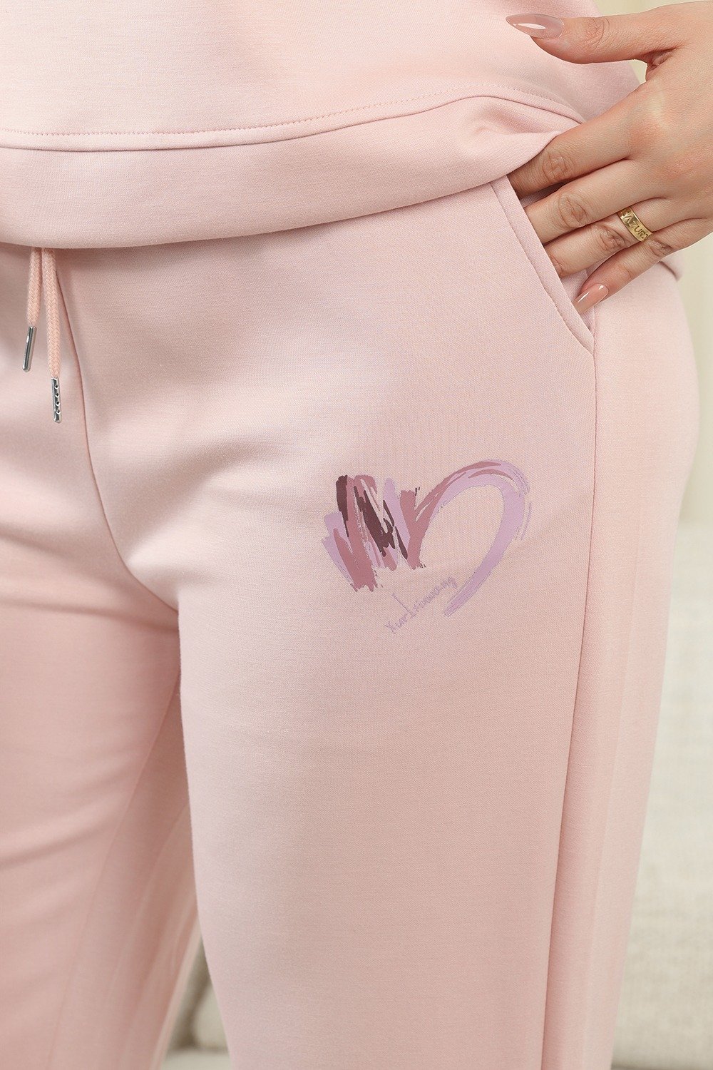 ترنج نسائي كاجوال مزين بطبعة بشكل قلب باللون الزهري