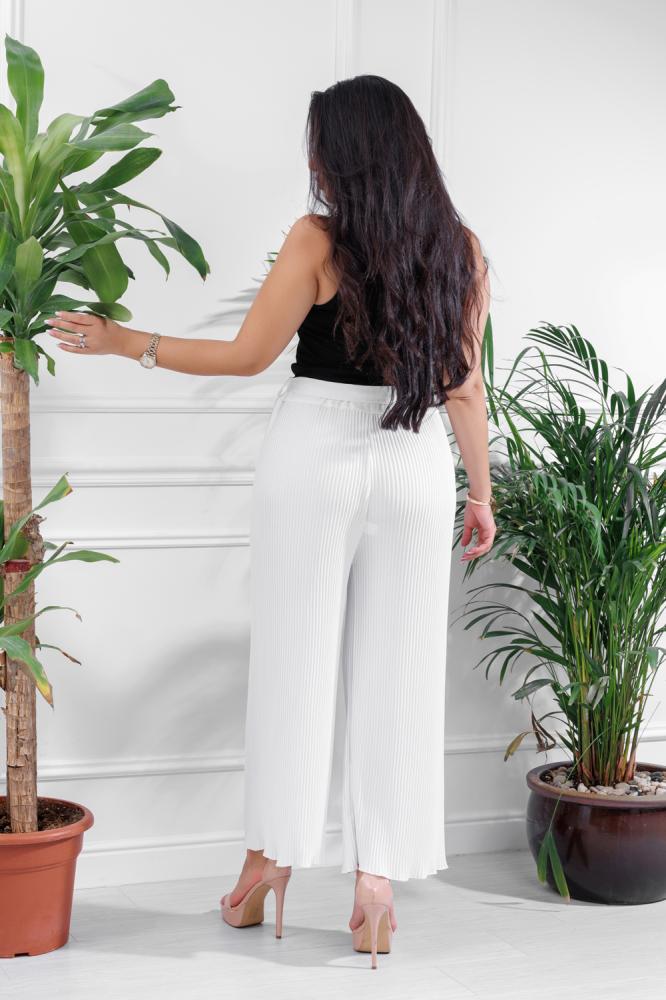 لمناسباتك الخاصة ونشاطك اليومي، صممنا لكِ بنطال يمنحك حرية الحركة بتصميمه الواسع، الهادئ والناعم، وأضفنا له لمسة خاصة بتصميم كسرات على طول البنطال لإعطاءك مظهراً مميزاً.