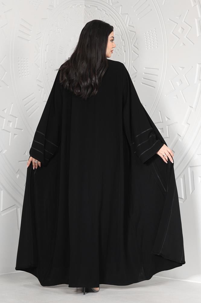 عباية قماش كريب الفاخر مزينة بخطوط أسود لف