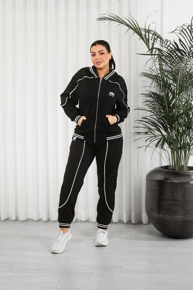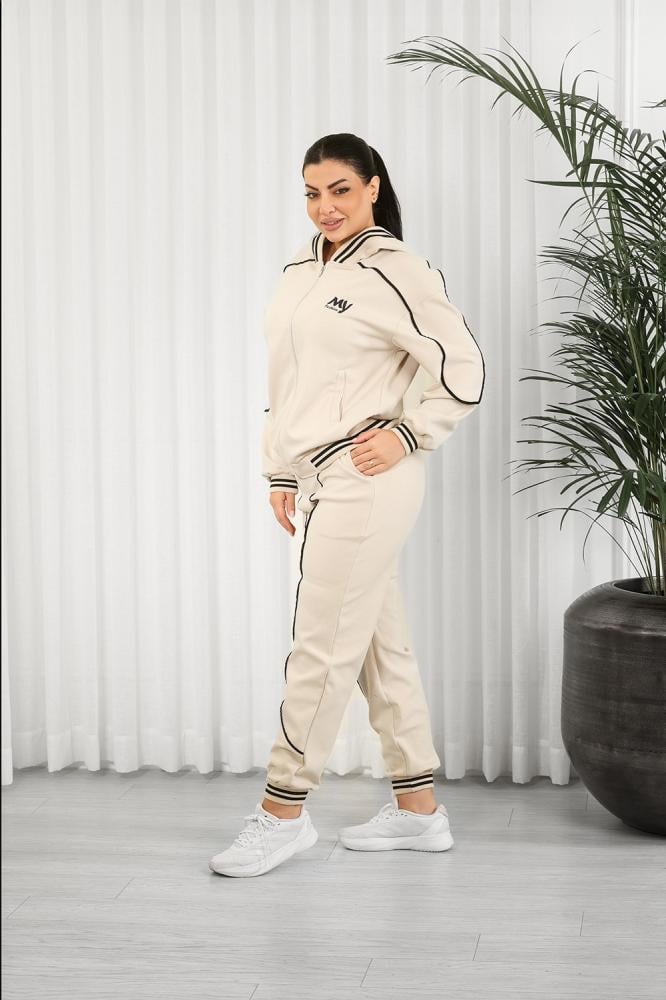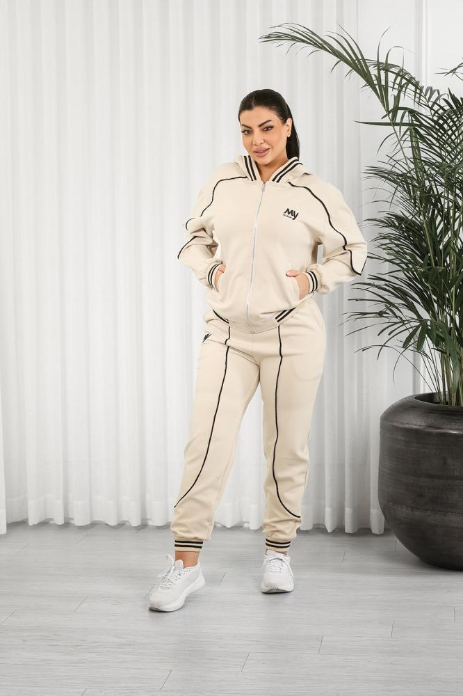 طقم رياضي مكوَّن من جاكيت بسحّاب كامل وبنطلون بقصّة ضيقة عند الكاحل