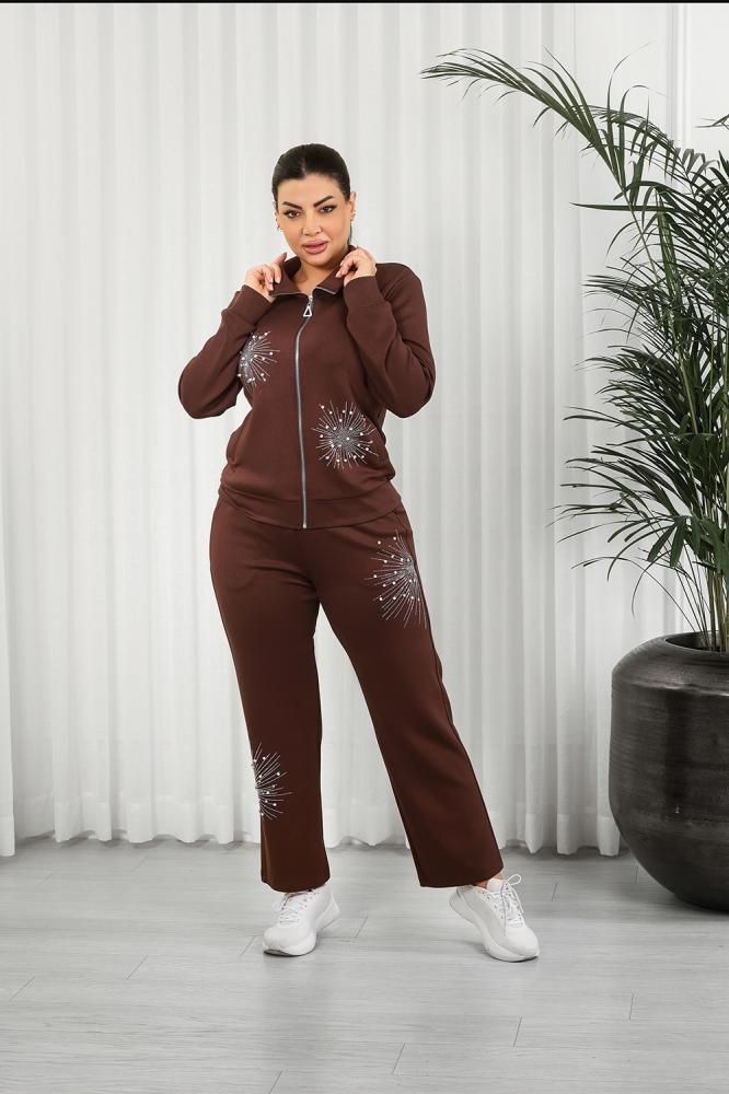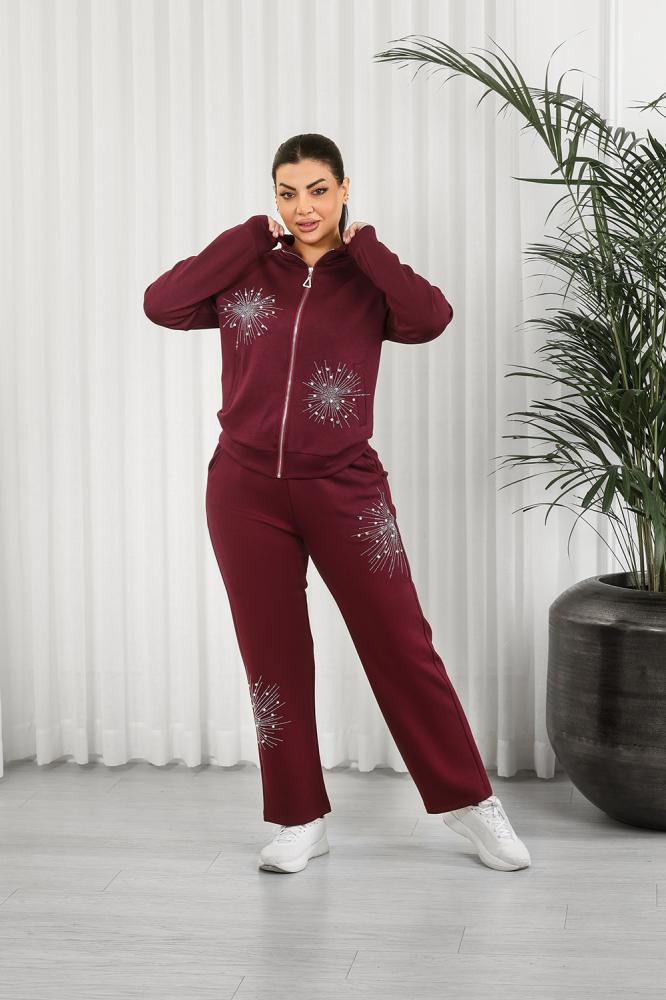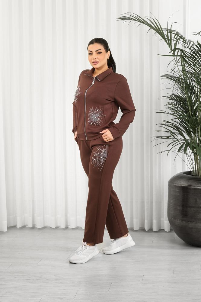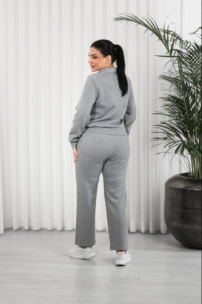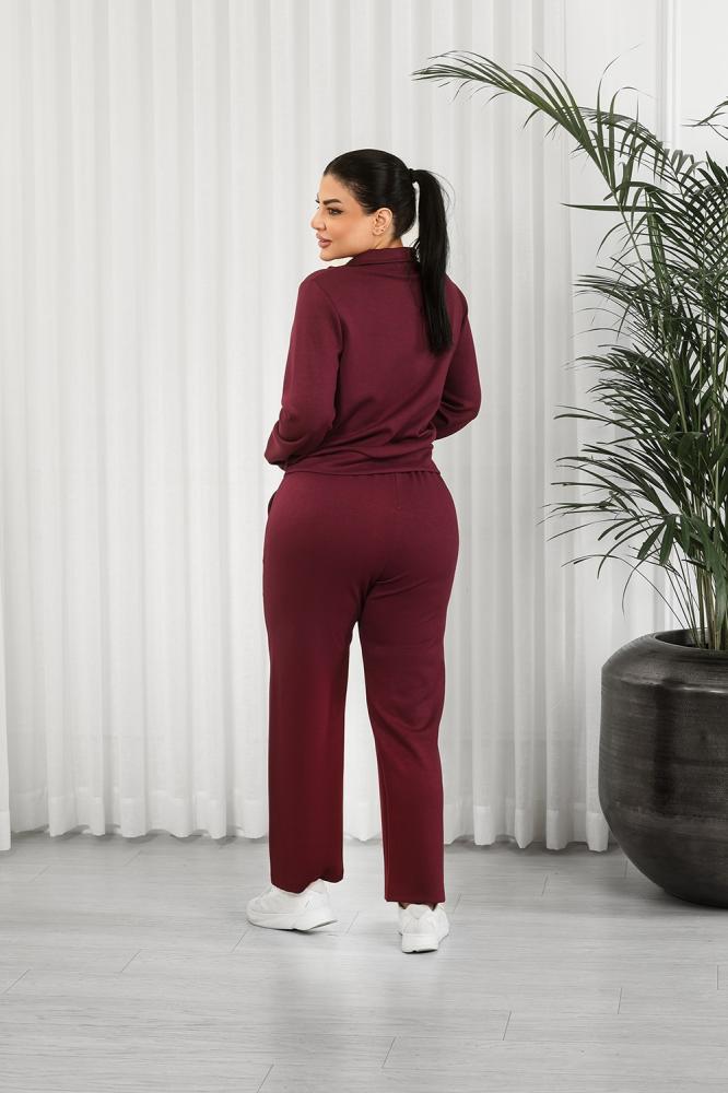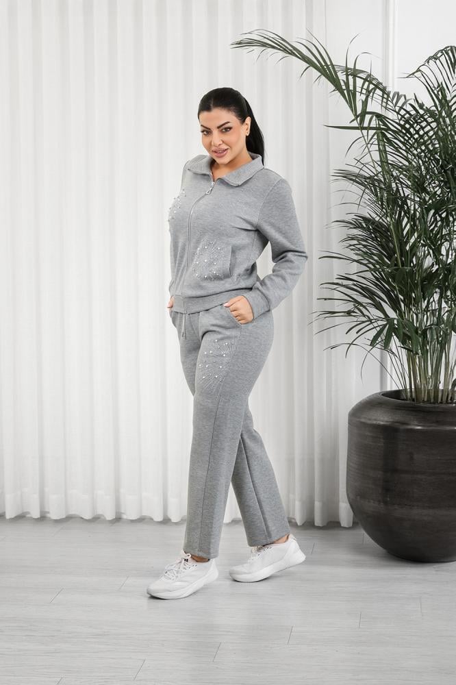 طقم رياضي نسائي مكوَّن من جاكيت بسحّاب أمامي كامل وبنطلون بقصة ضيقة عند الكاحل (Tapered Fit).