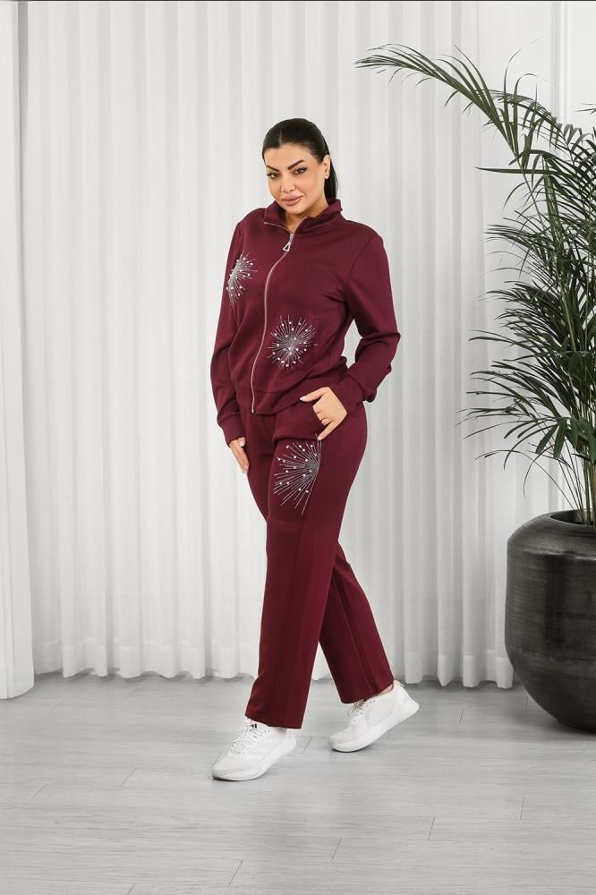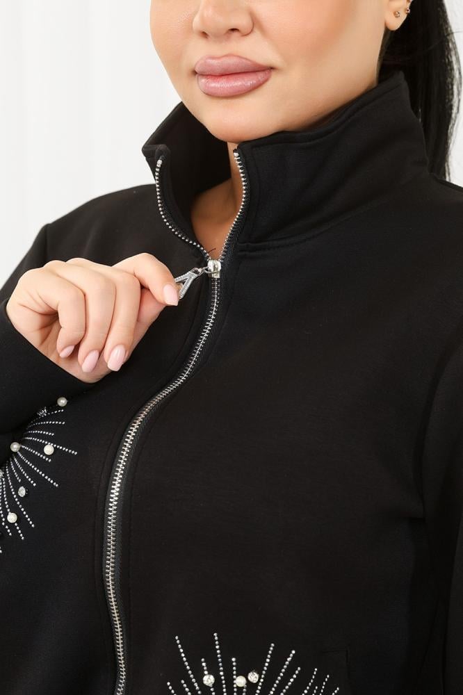 ترنج شتوي سحاب بأكمام طويلة وستراس