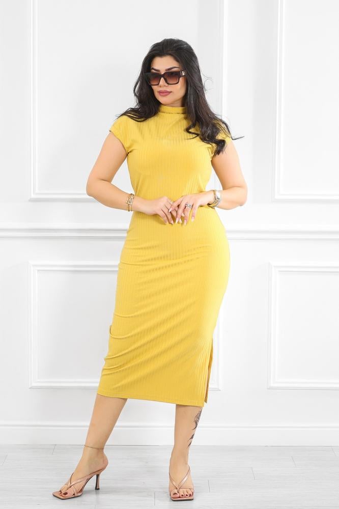 هذا الفستان مثالي لعدة سياقات بفضل لونه الجريء وتصميمه المتوازن: