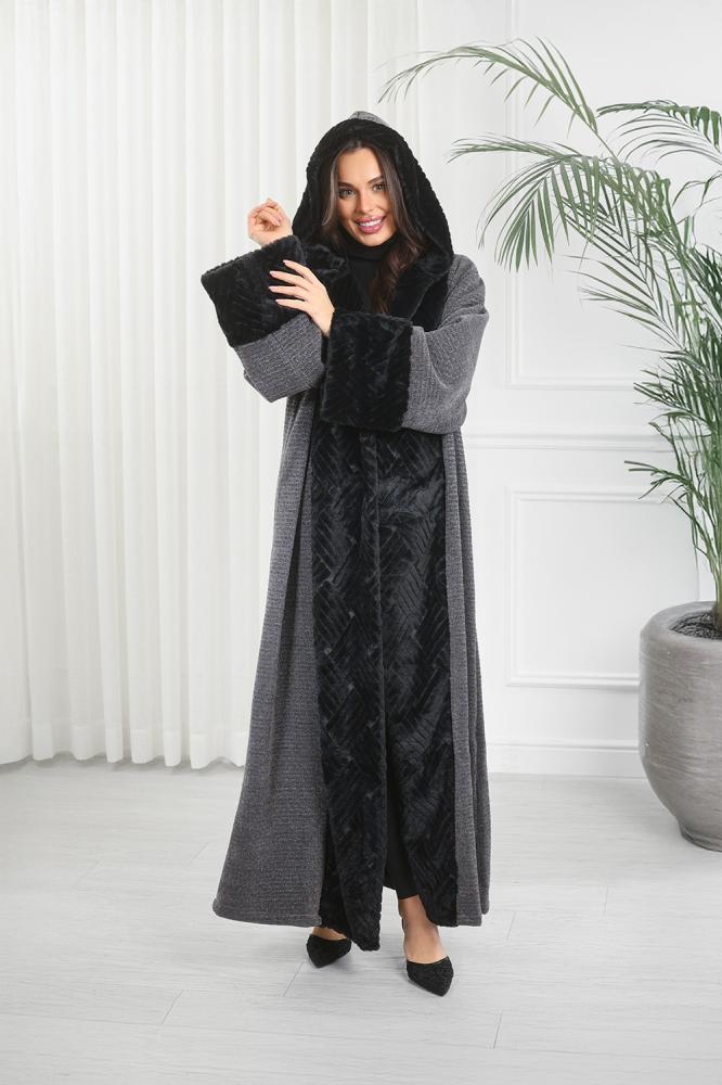 روب منزلي طويل نسائي بتصميم ملفوف مفتوح