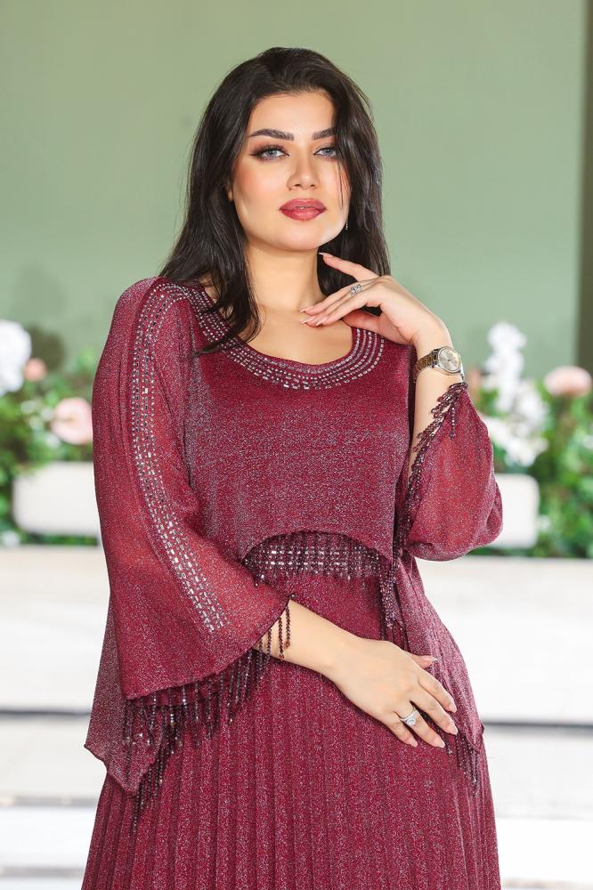 فستان سهرة طويل بكسرات
