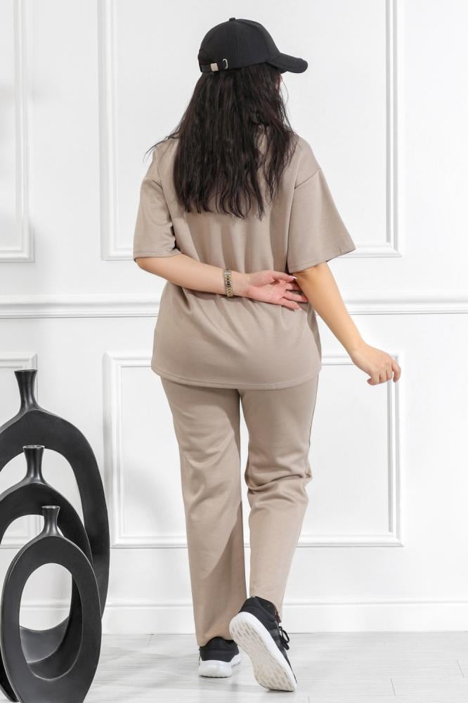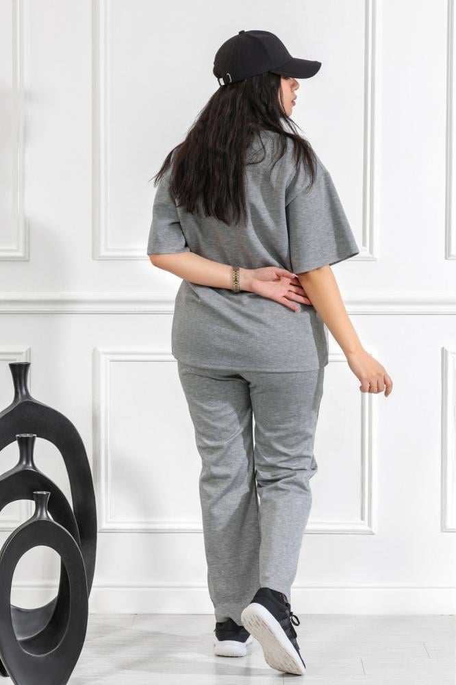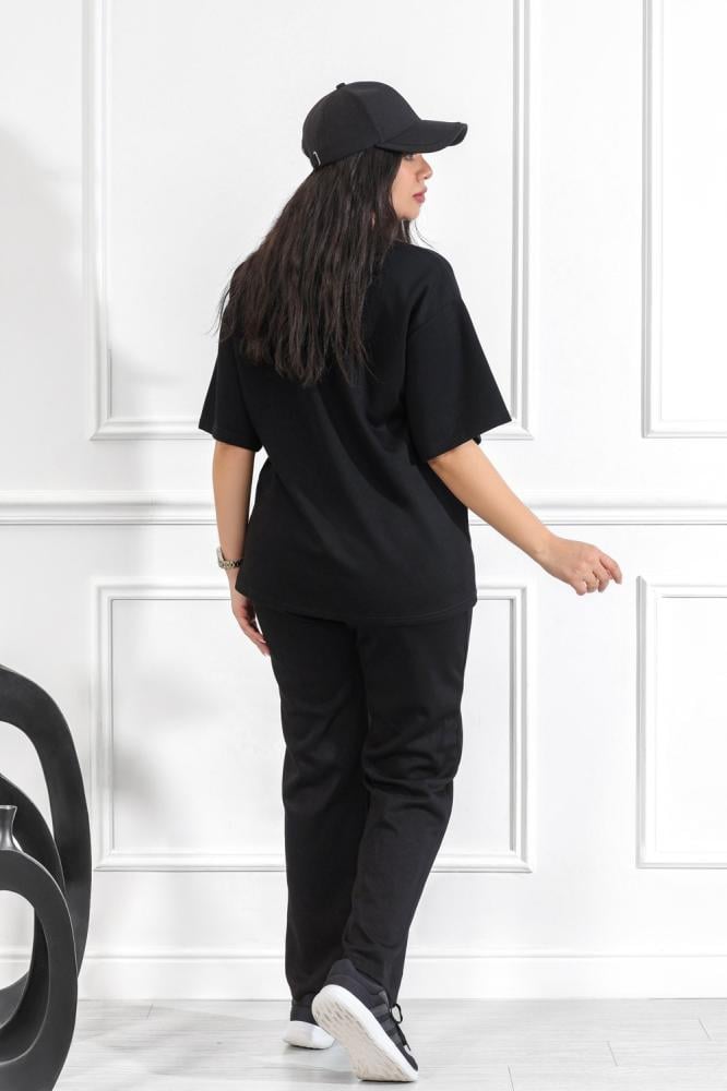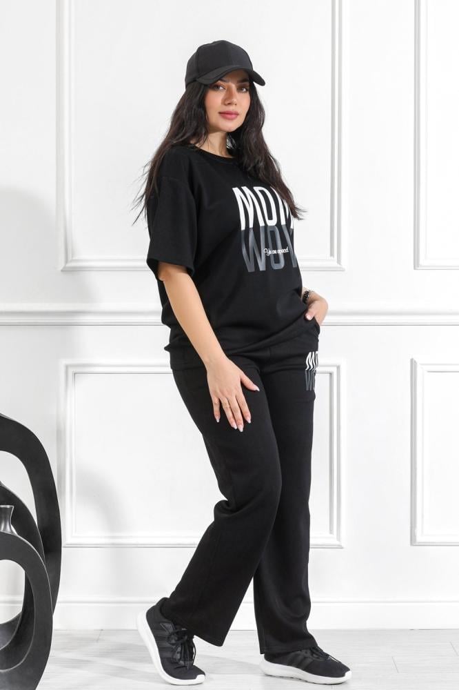 - المنتج هو طقم رياضي أنثوي مكون من تيشيرت واسع وسروال رياضي متماثل اللون، مُصمم للإطلالات اليومية العصرية التي تجمع بين الراحة والجرأة البصرية.