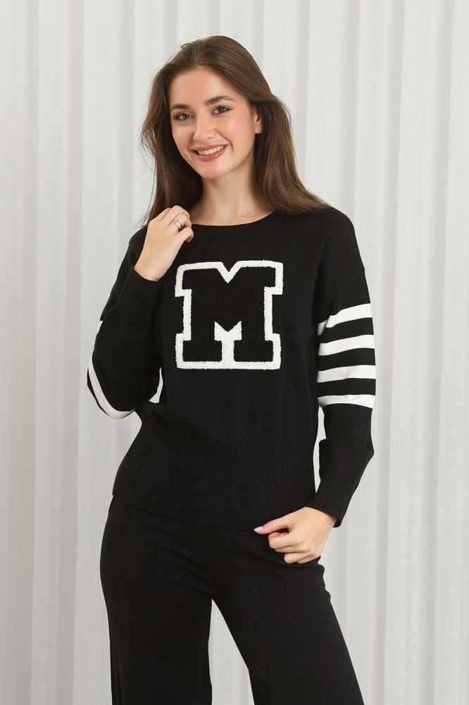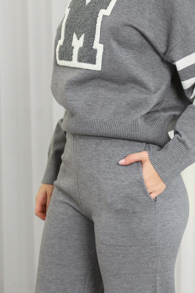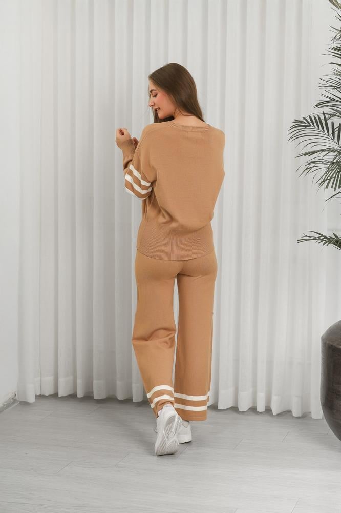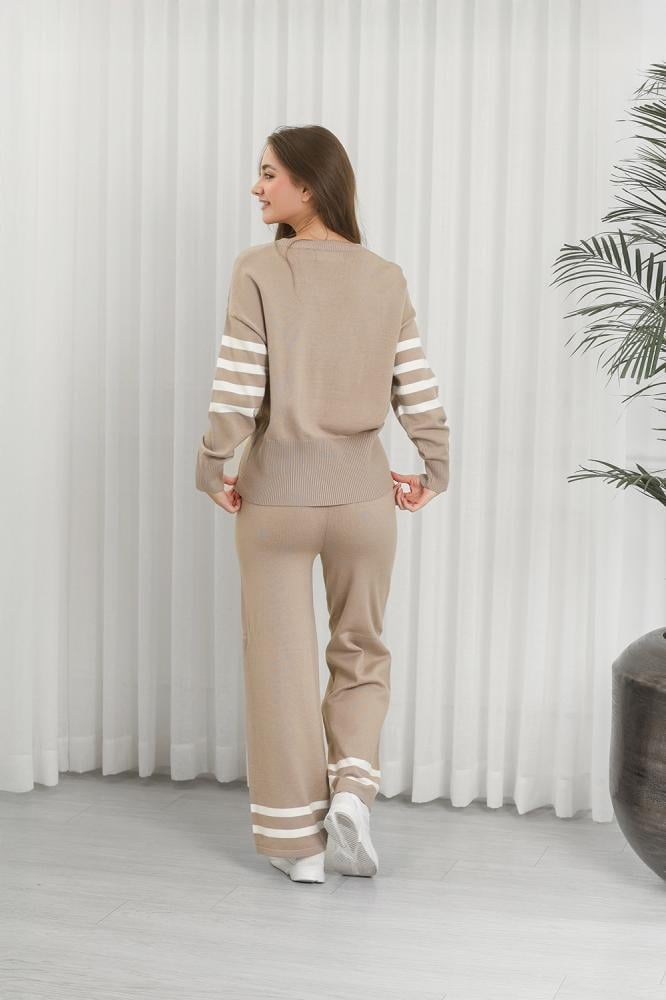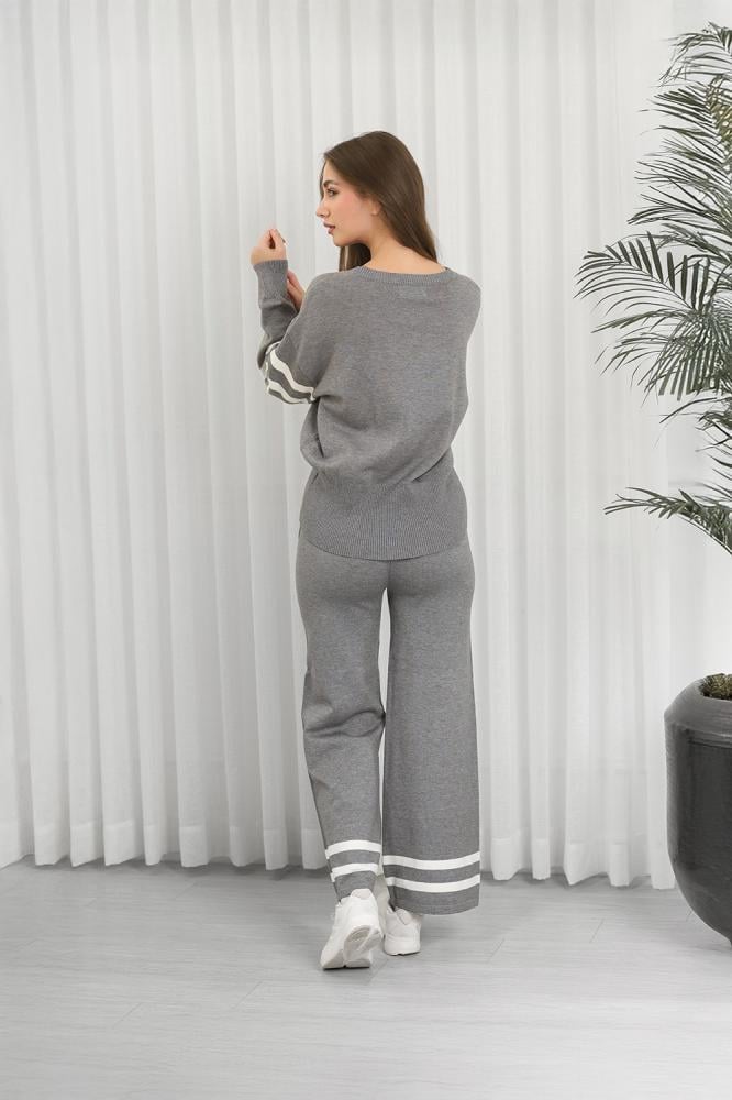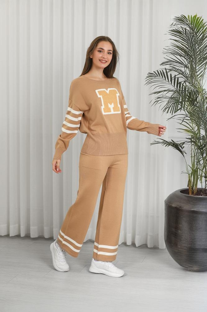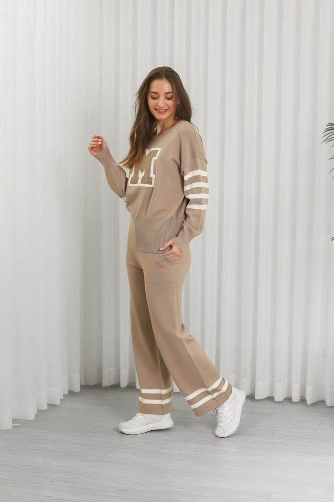 طقم كاجوال مكوَّن من سويتر محبوك وبنطلون رياضي، مثالي للارتداء اليومي المنزلي أو الخروجات الخفيفة.