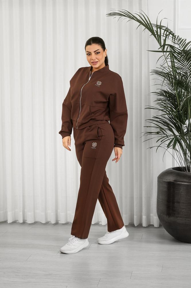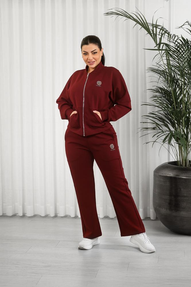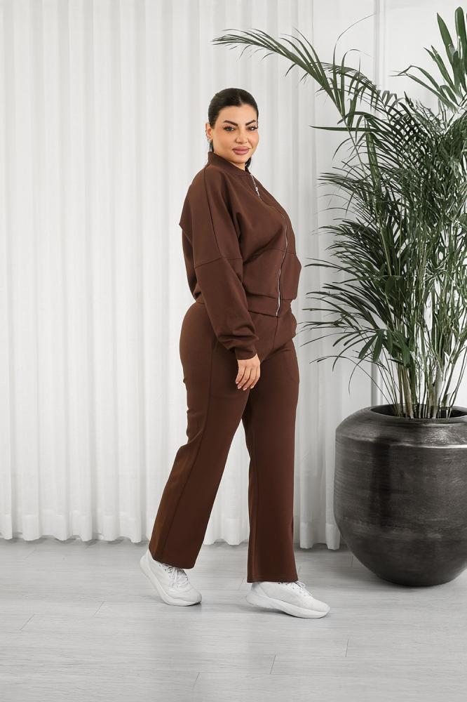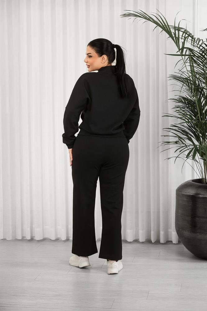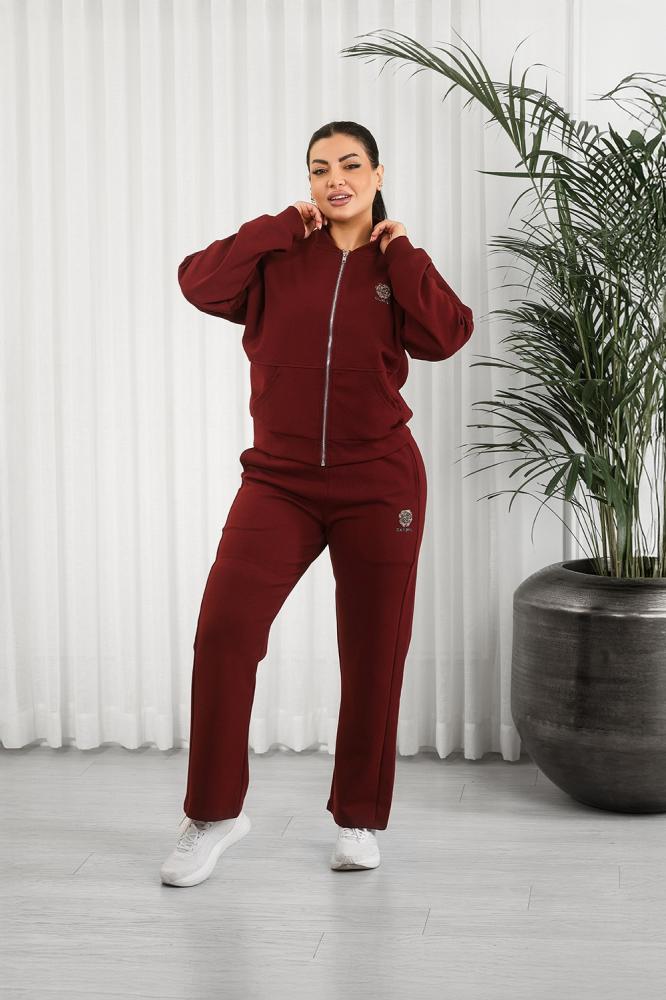 طقم رياضي نسائي مكوَّن من جاكيت بسحّاب كامل وبنطلون بقصة ضيّقة عند الكاحل (Tapered Fit).