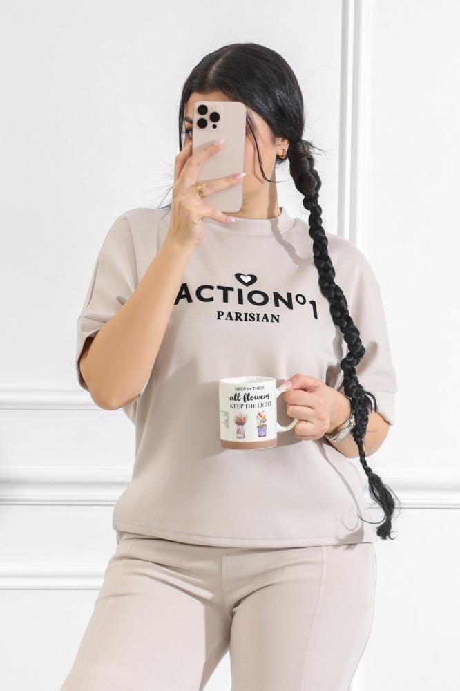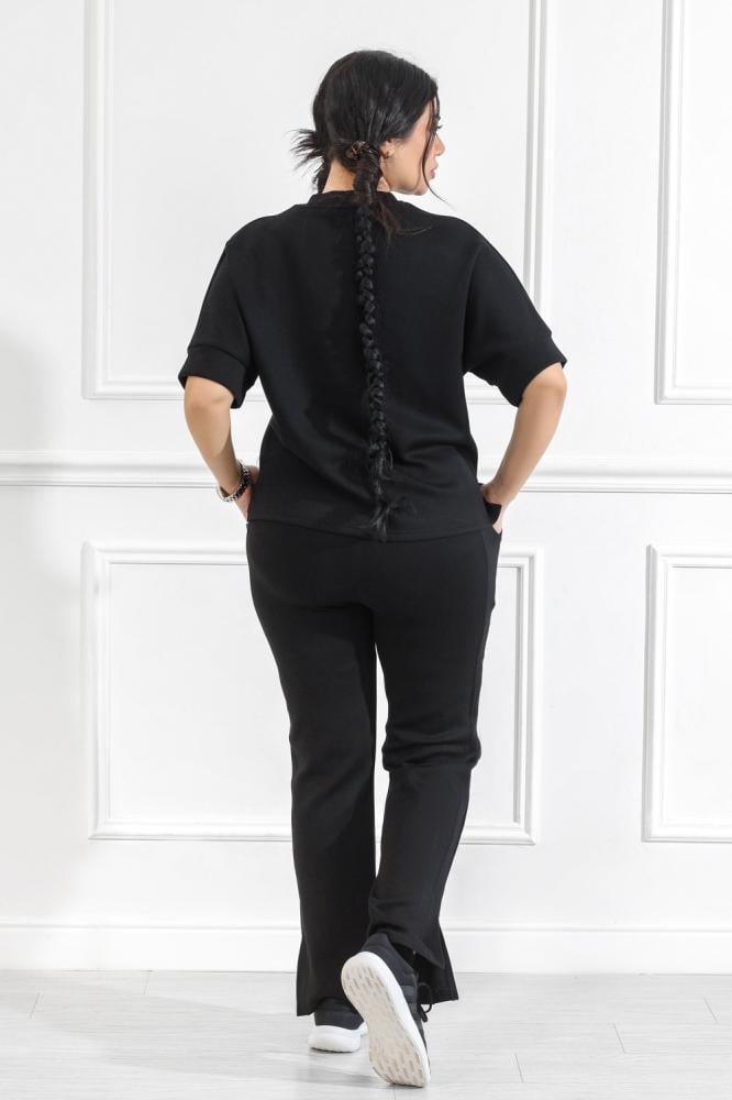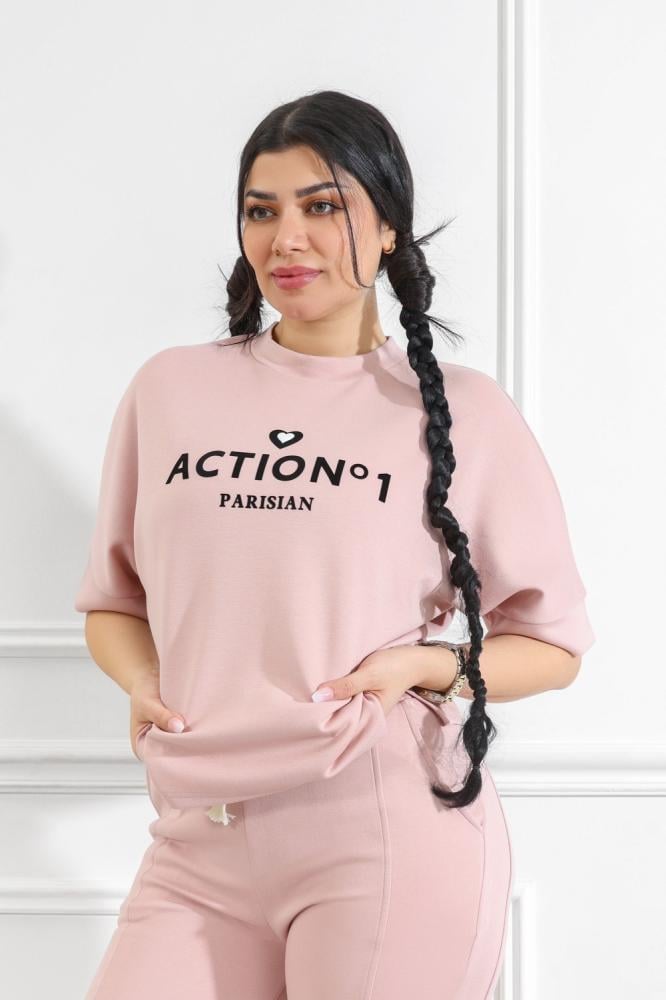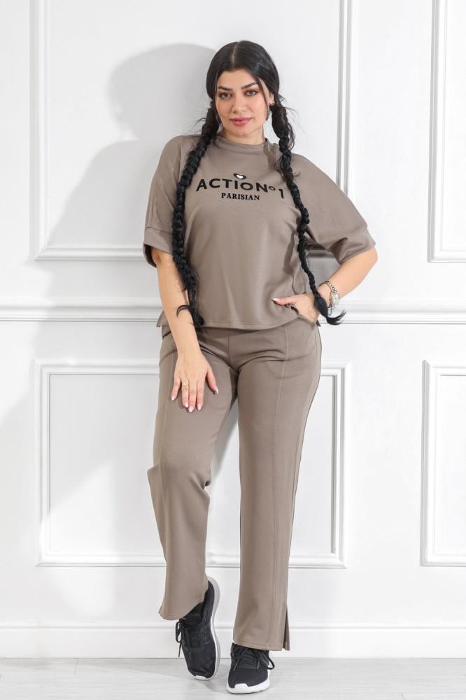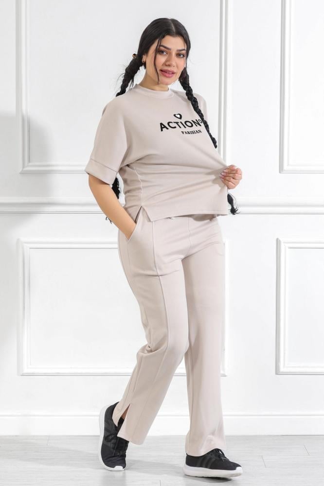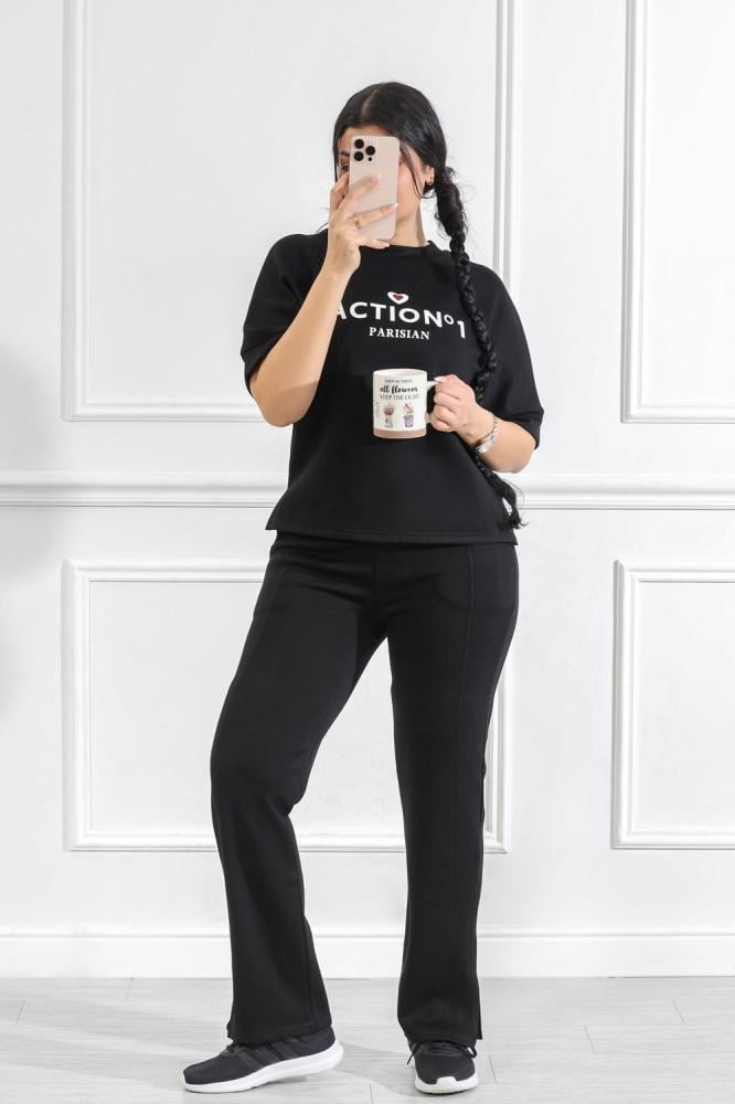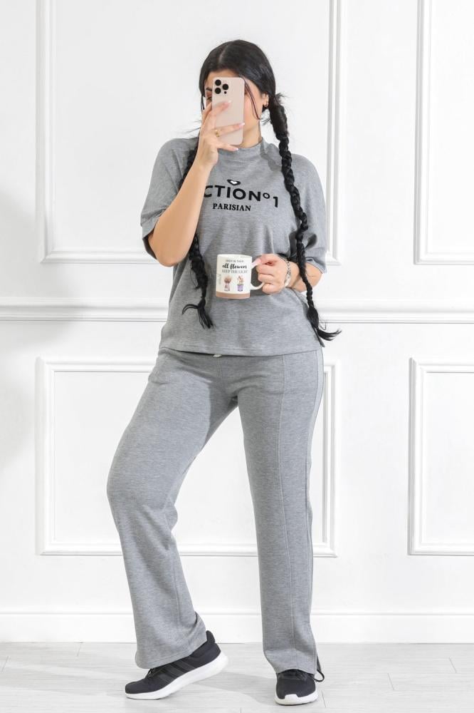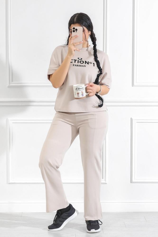 المنتج عبارة عن ملابس رياضية مريحة مصممة للارتداء اليومي مع لمسة أنيقة تناسب الاستخدام في الأماكن المغلقة أو التنزه البسيط.