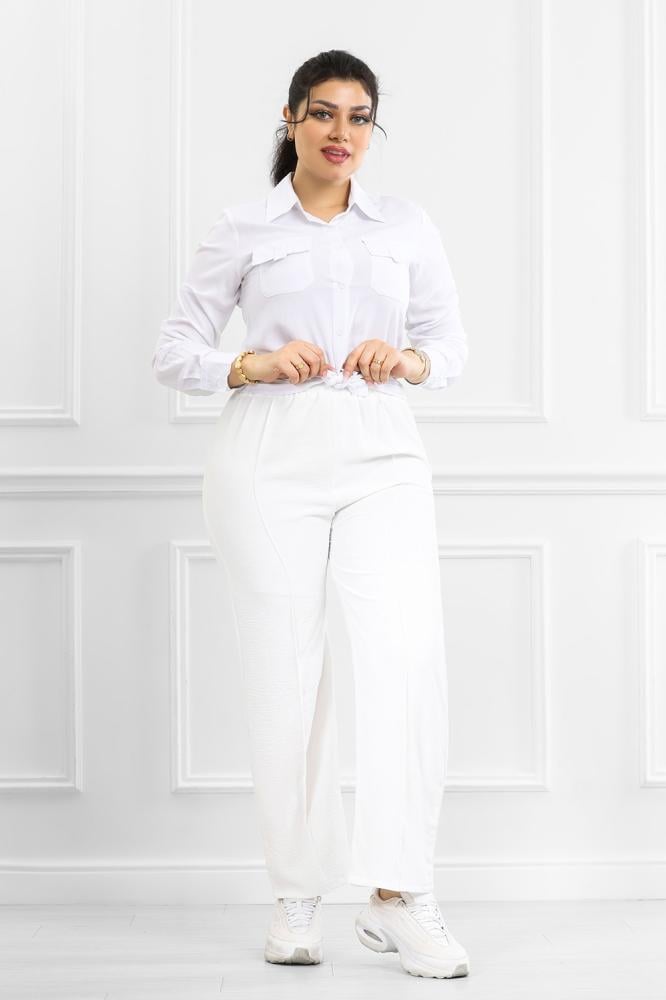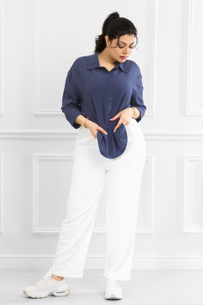 بنطلون واسع من الكاحل يُبرز تناسق القوام ويخلق توازنًا بين الإطلالة المرتاحة والأنيقه