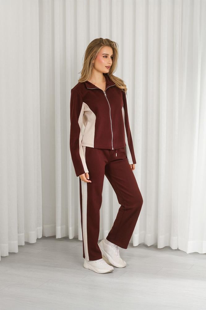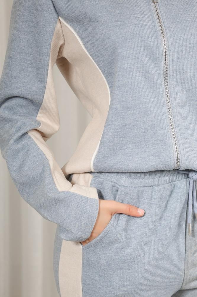 طقم مكوَّن من جاكيت بسحّاب أمامي كامل وبنطلون رياضي يناسب جلسات التمارين والاسترخاء.