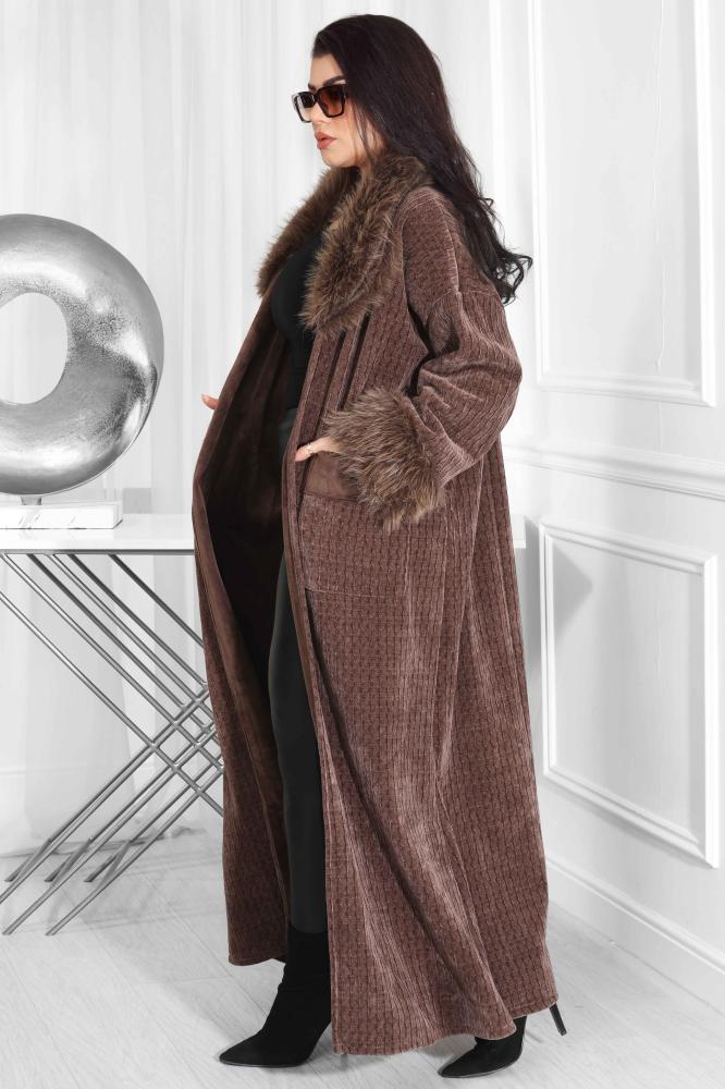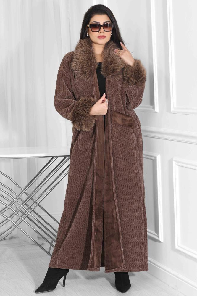 تصميم كلاسيكي أنيق لبشت شتوي ماكسي، من خامة عالية الجودة دافئة، أضفنا له فرو على الحواف ونهاية الأكملم بلون متناسق مع اللون الأساسي للتصميم، نوفره بخطاف صغير لإغلاق جذاب.