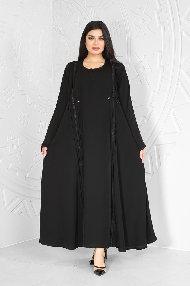عباية مغلق قماش كريب انترنت كريستال في الأمام والكم نص كلوش