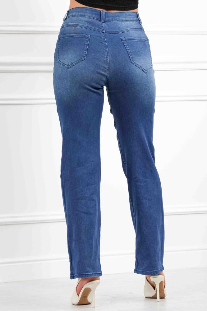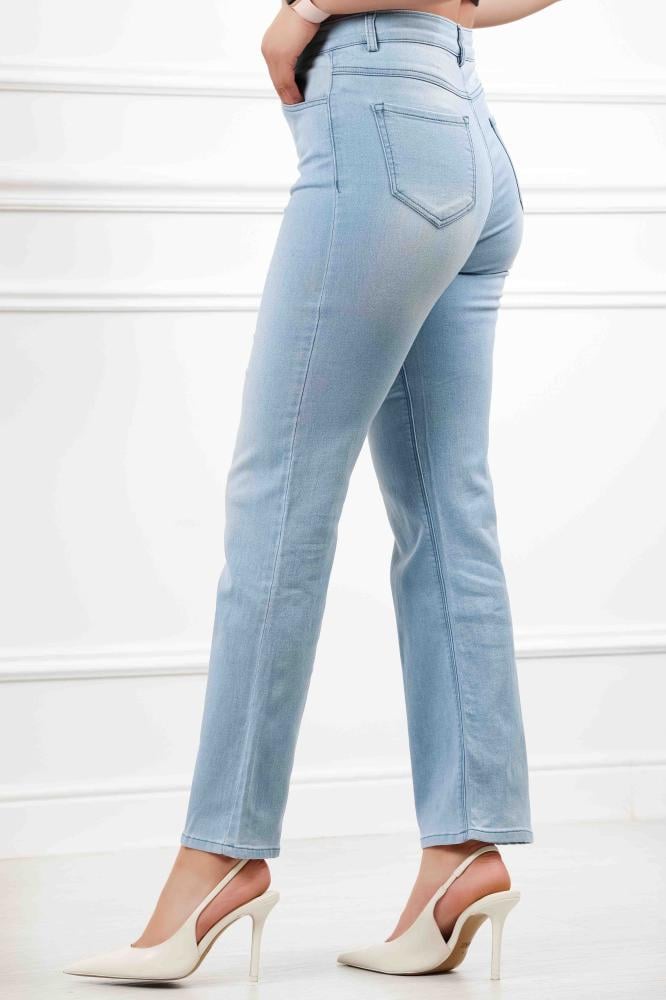 بنطال جينز مستقيم يتميز بقصة مستقيمة من الورك الى الكاحل بدون تضييق او توسيع،مصنوع من قماش الدينيم الغير متمدد ، يتسم بتصميم بسيط ، يناسب مختلف انواع الجسم ، متوفر بالوان ودرجات متنوعة