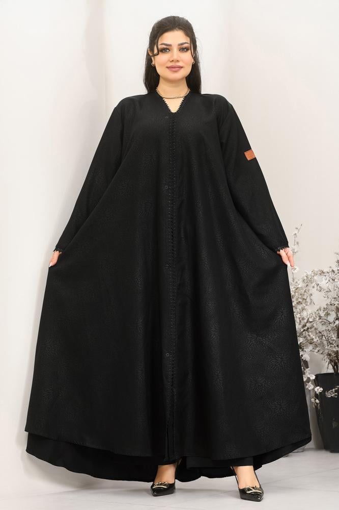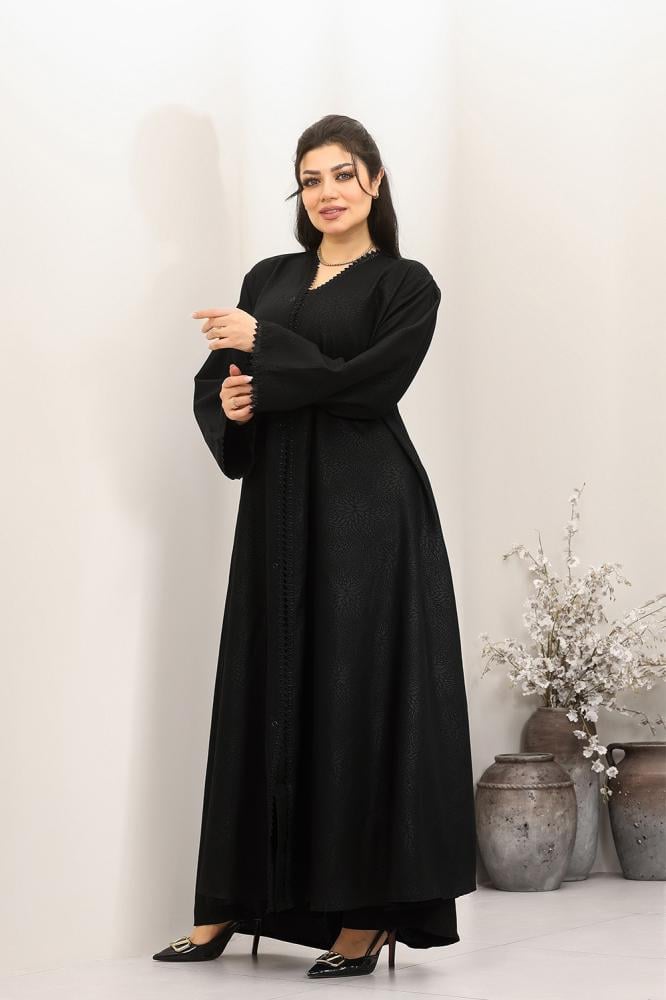 “A black abaya, as black as night, touches the ground elegantly, its motifs hint at the secrets of craftsmanship, and its modern frame redefines authenticity.”