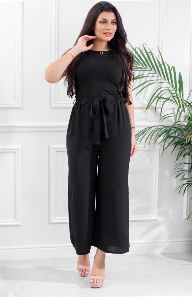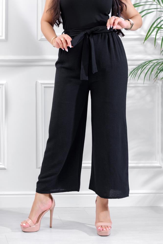 Comfortable and trendy design of loose wide leg pants, we offer them with a high waist and straps on the waist for a front or back bow.