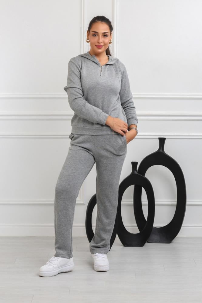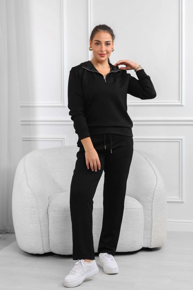 Fashionable tracksuit made of soft warm winter material, with a modern casual design, with a small front zipper, with pants suitable for daily wear