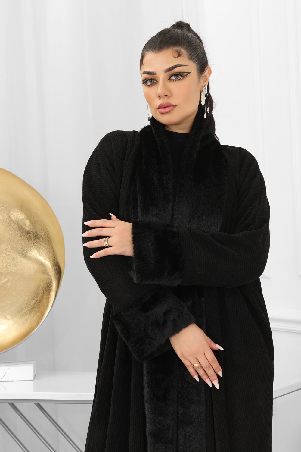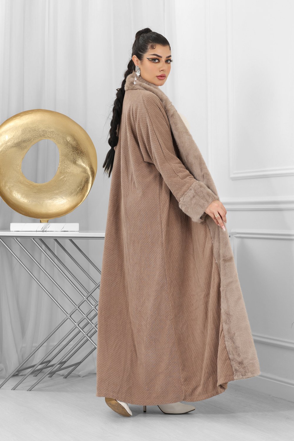 Maxi winter bisht made of high quality knitted fabric, with long sleeves ending with fur.